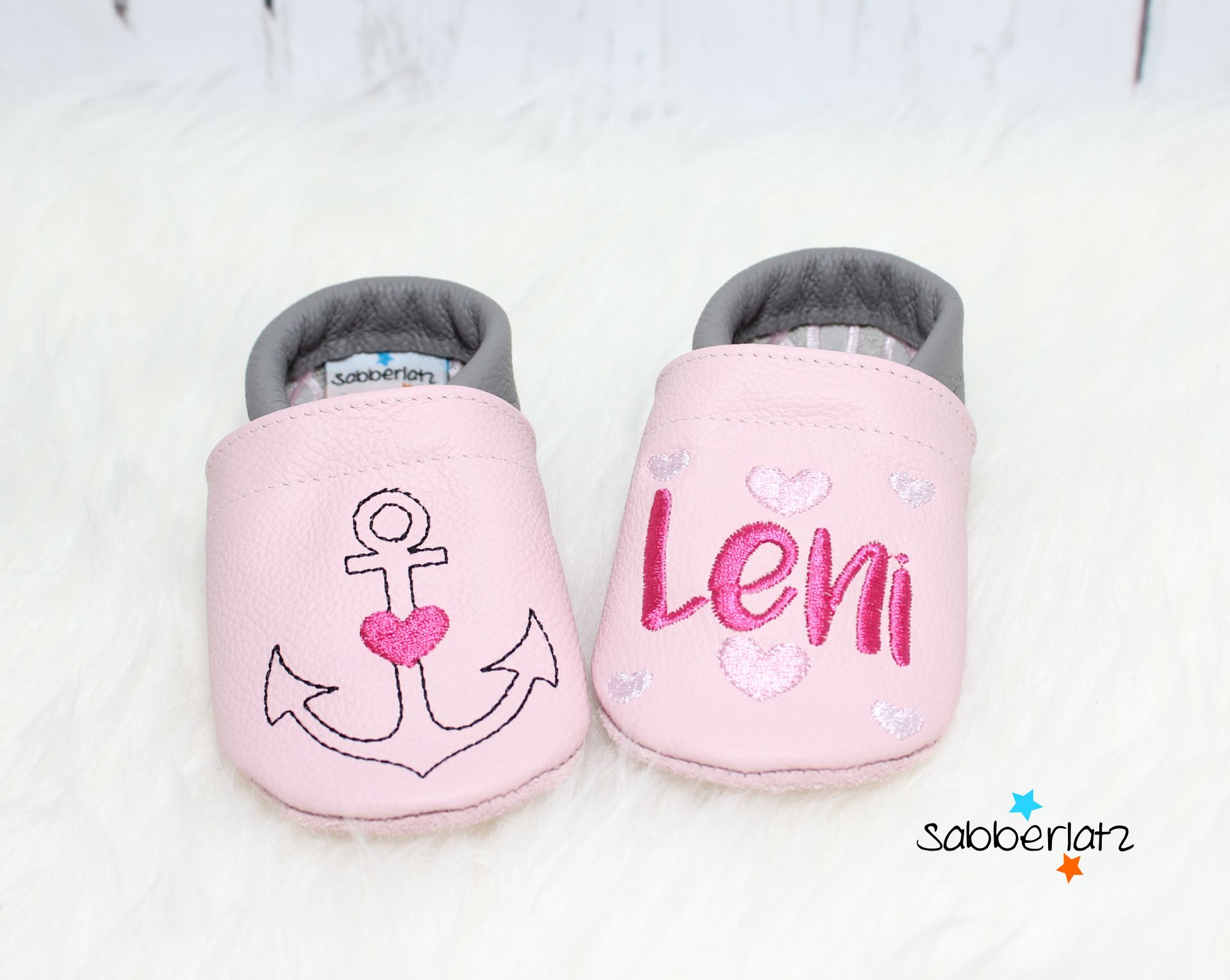 Bitte beachten: Das Gummi in den Puschen lasse ich offen, damit es individuell an den Fuß des Kindes angepasst werden kann. Eine Anleitung zum Verknoten liegt der Bestellung bei.