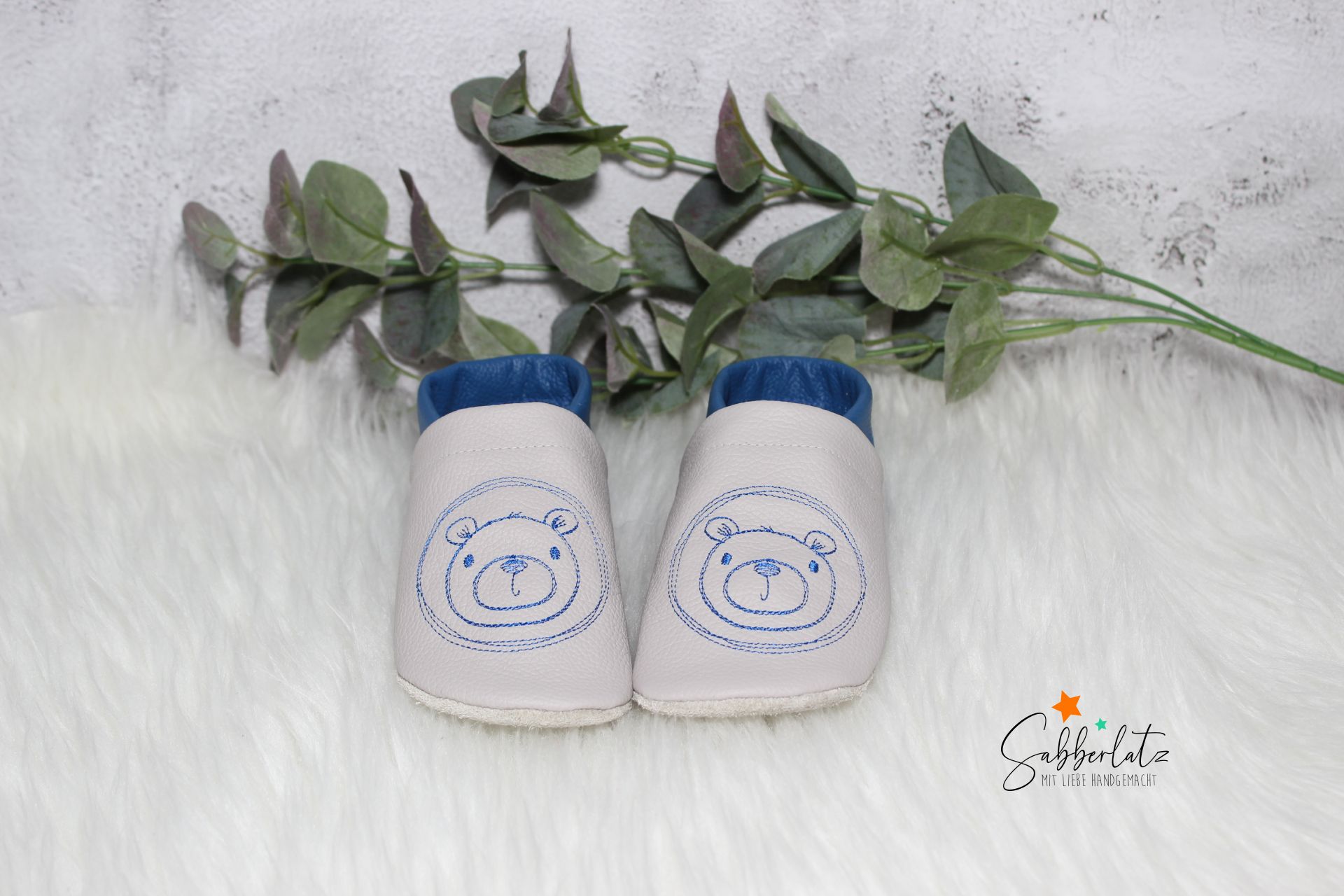 Hellgrau Mittelblau, Sohle Hellgrau, Stickfarbe: Blau