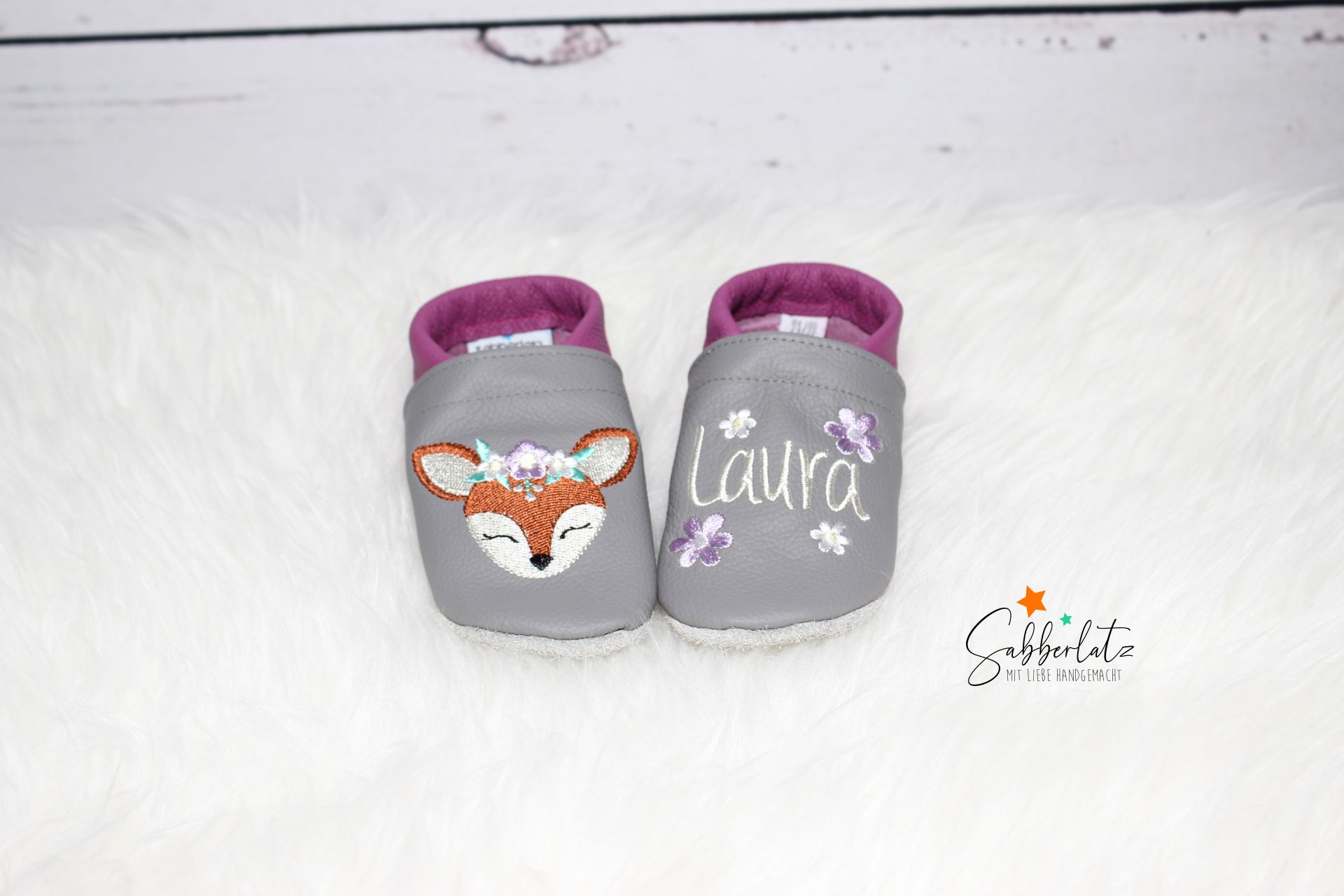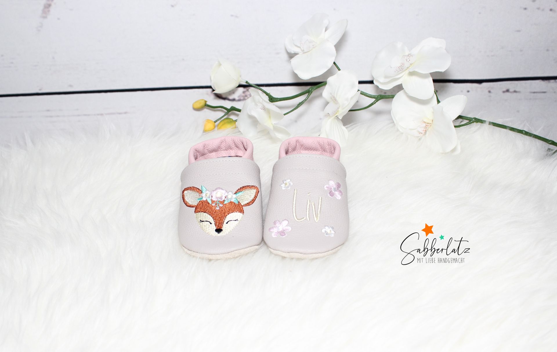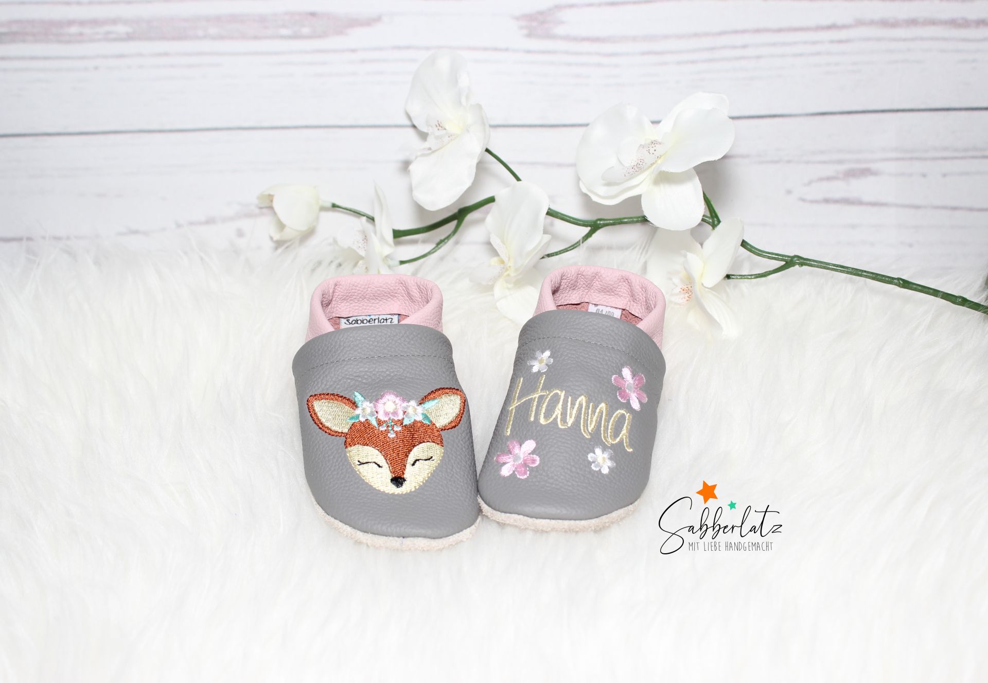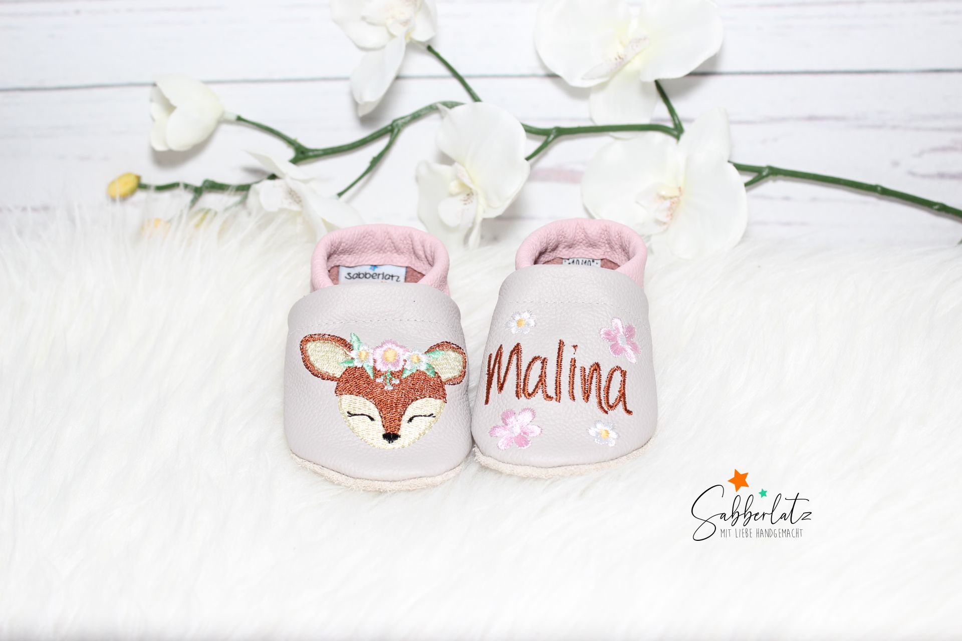 Lederpuschen Boho-Reh mit Blume