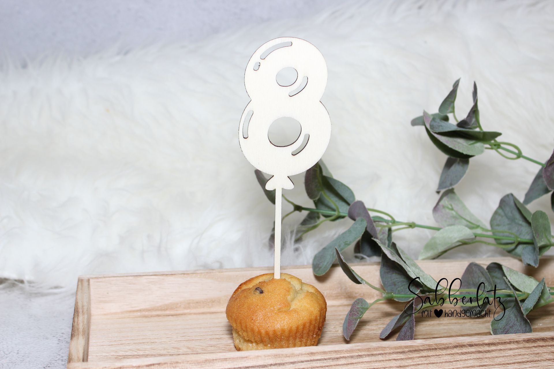 Der Caketopper wird aus Sperrholz Natur mit einer Stärke von ca. 3mm gefertigt.