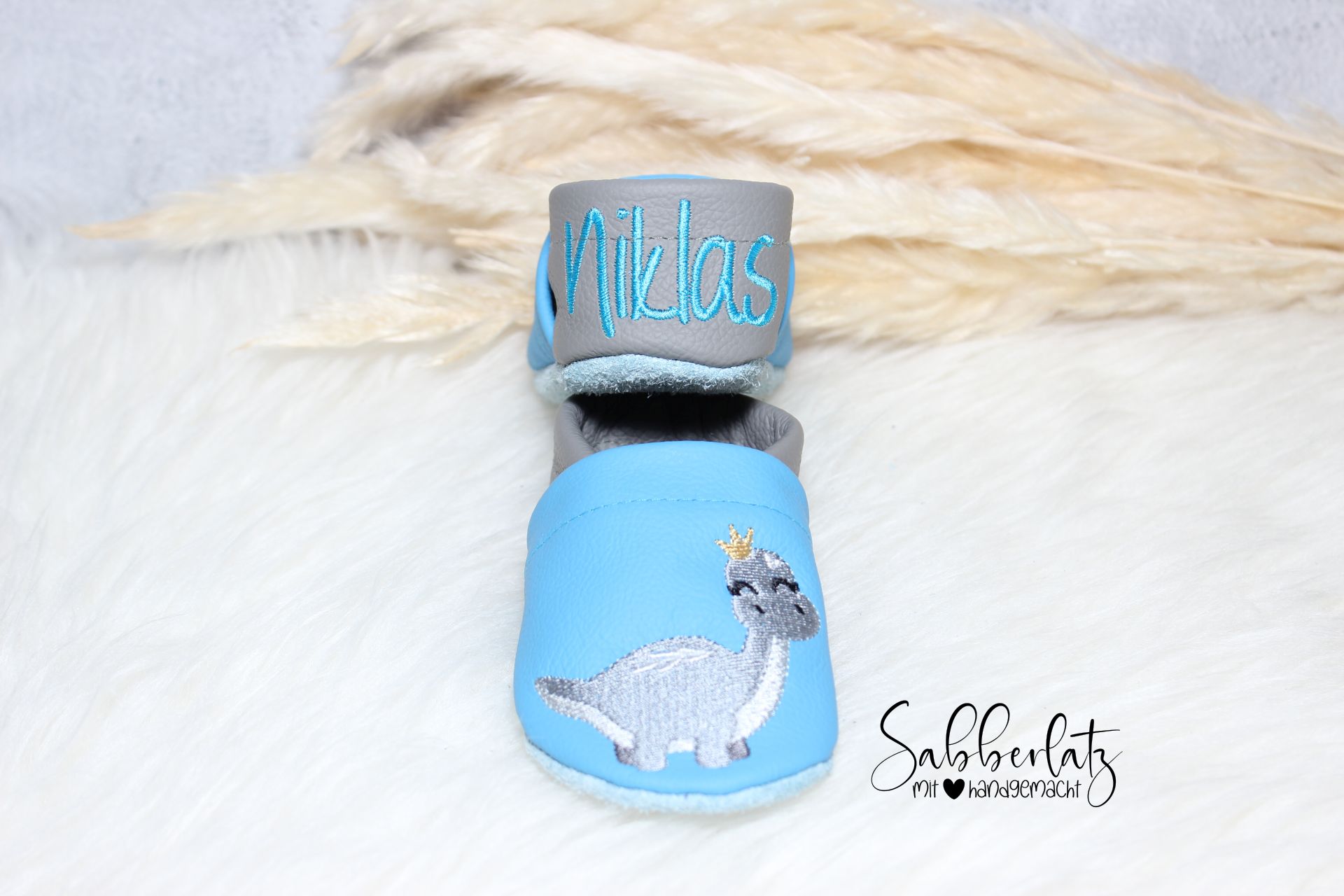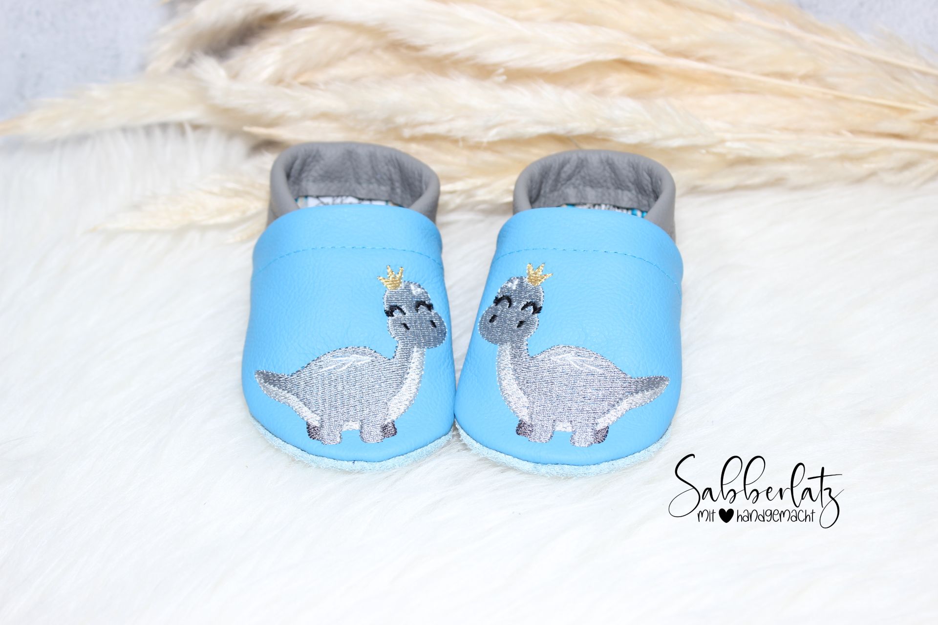 Lederpuschen Dino mit Krone