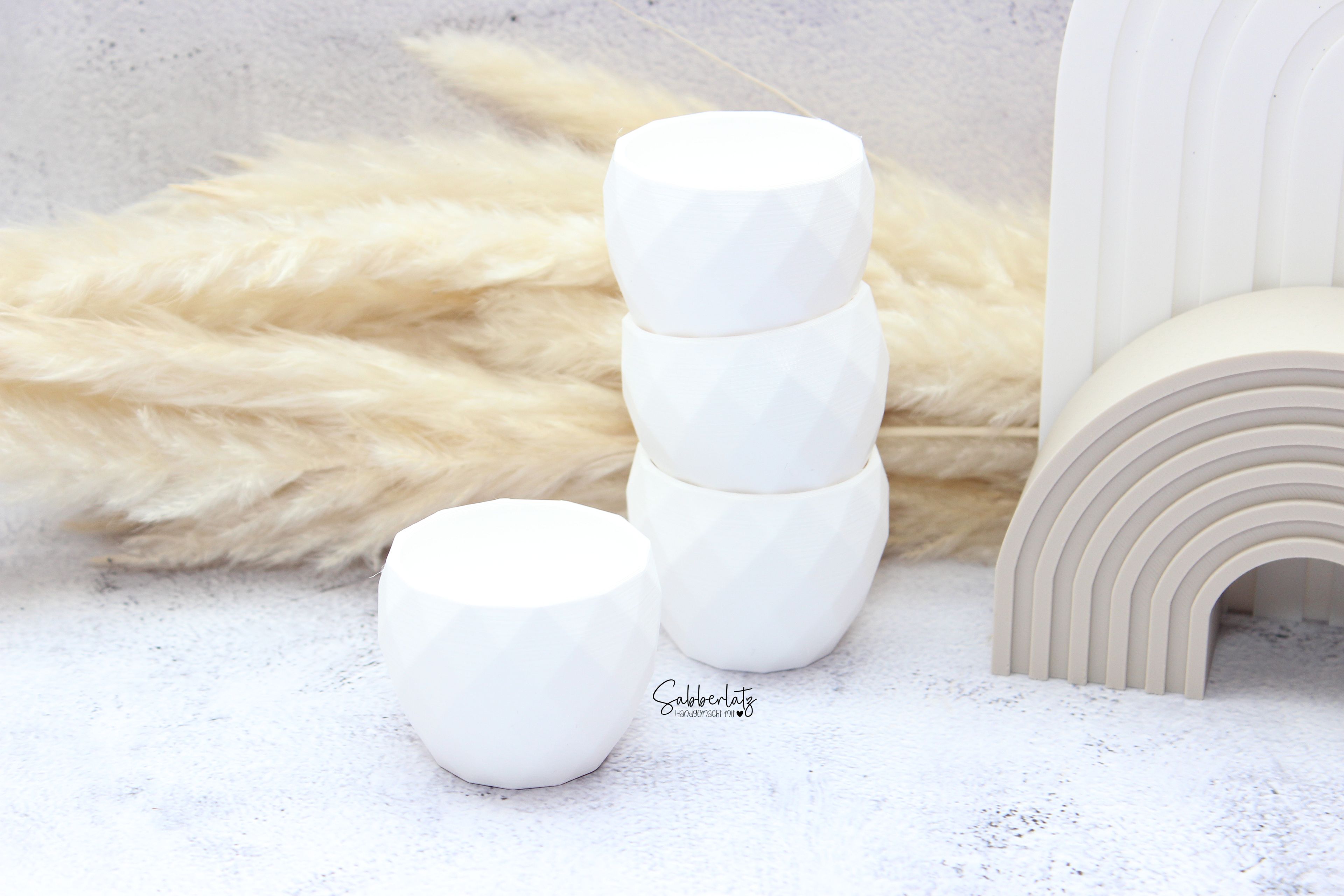 Der Eierbecher wird mit einem 3D-Drucker aus PLA gefertigt. Dadurch entstehen leichte, stabile und langlebige Produkte mit einer modernen Struktur.