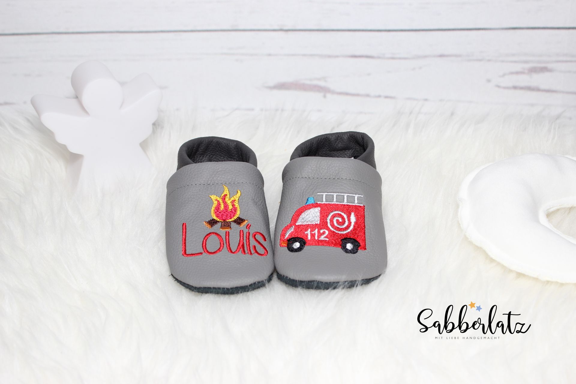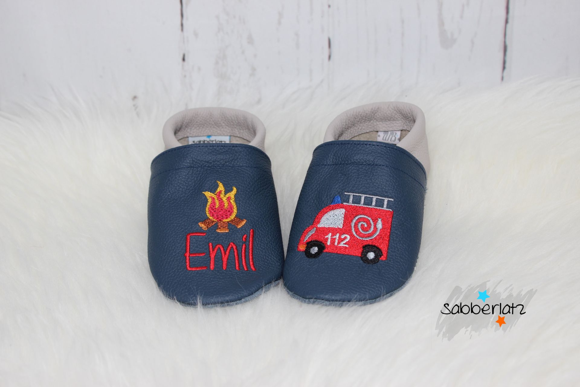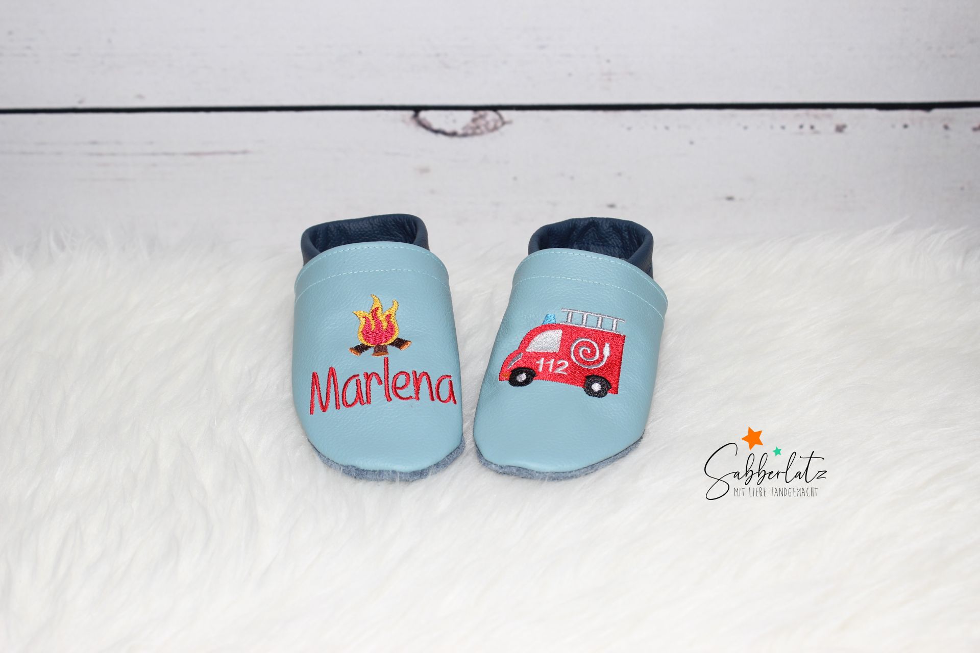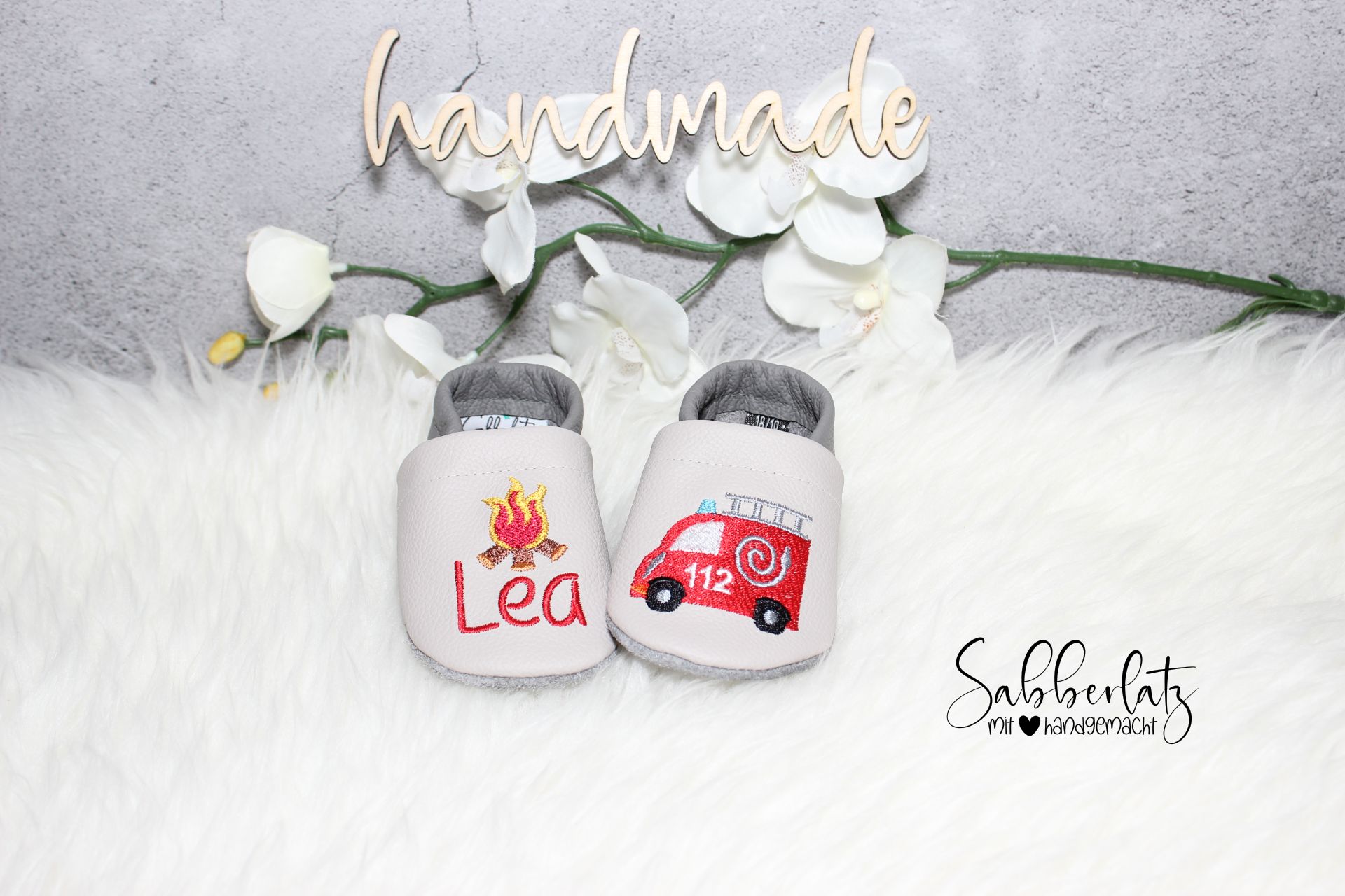 Bitte beachten: Das Gummi in den Puschen lasse ich offen, damit es individuell an den Fuß des Kindes angepasst werden kann. Eine Anleitung zum Verknoten liegt der Bestellung bei.