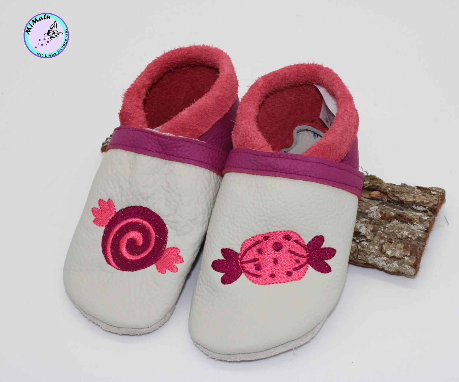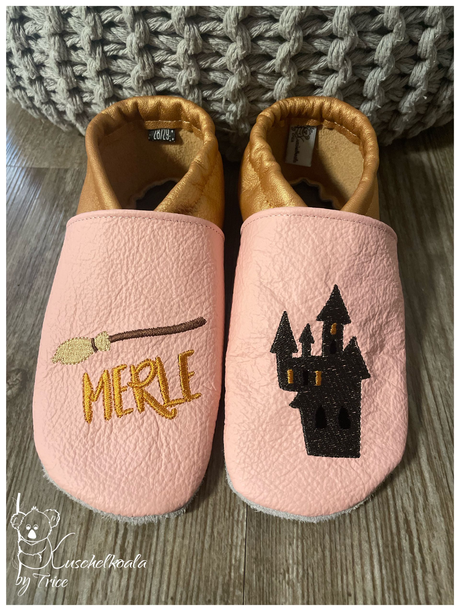 Alle Motive passen in den 10x10cm Stickrahmen und haben die perfekte Größe für Lederpuschen ab Größe 18 (Motivgrößen ca. 6cm)