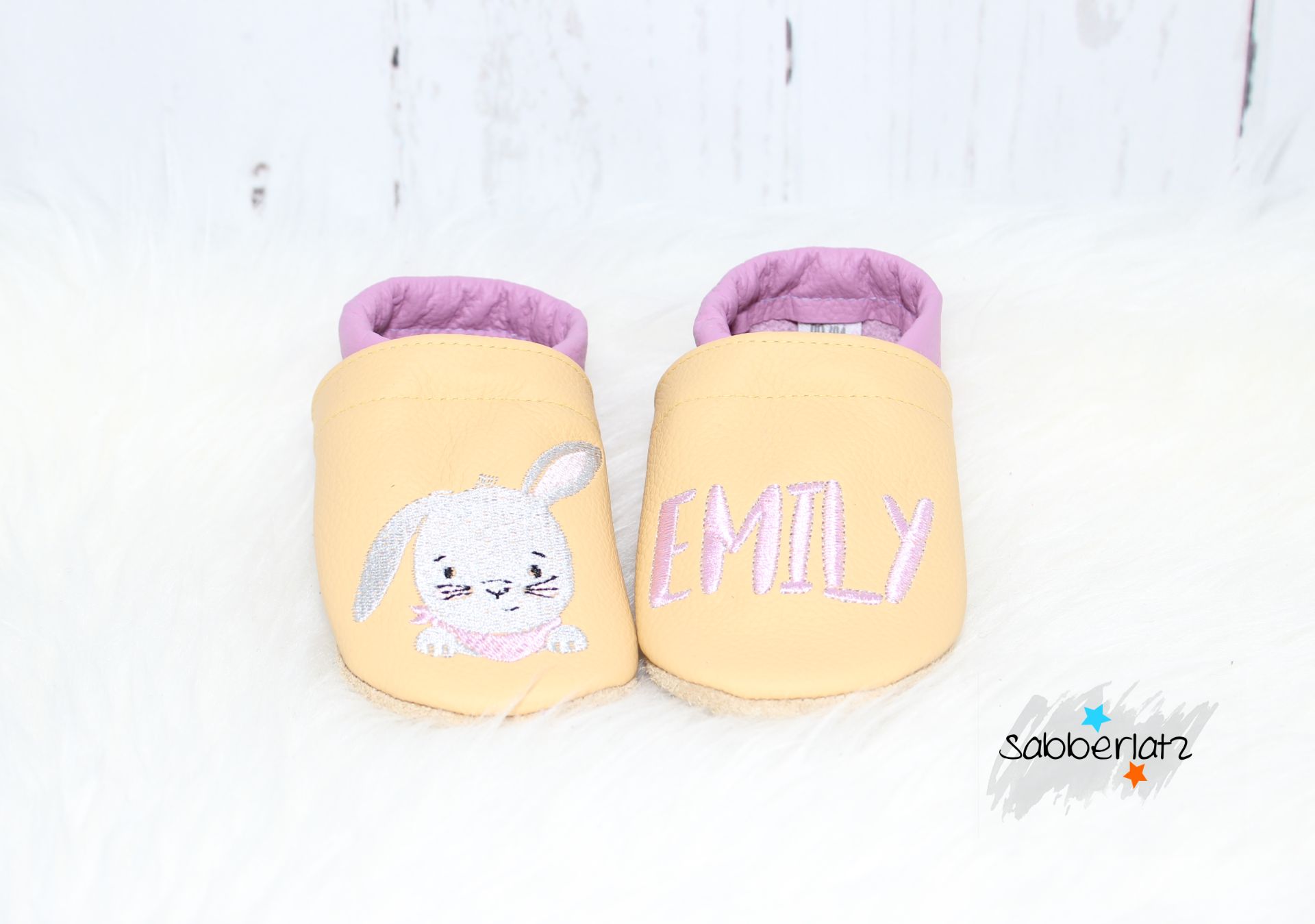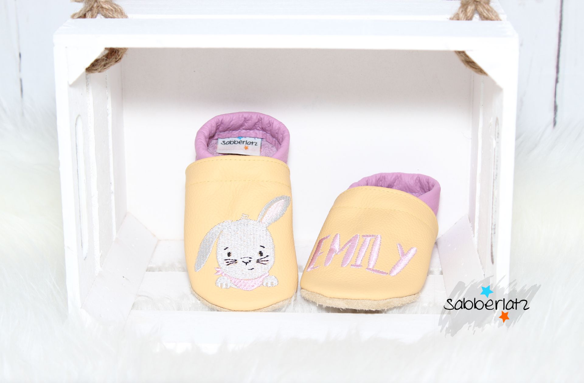 Bitte beachten: Das Gummi in den Puschen lasse ich offen, damit es individuell an den Fuß des Kindes angepasst werden kann. Eine Anleitung zum Verknoten liegt der Bestellung bei.