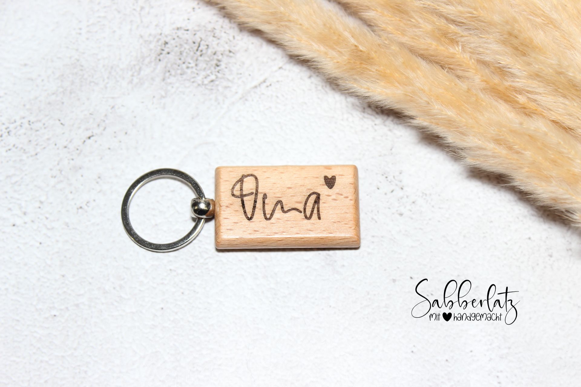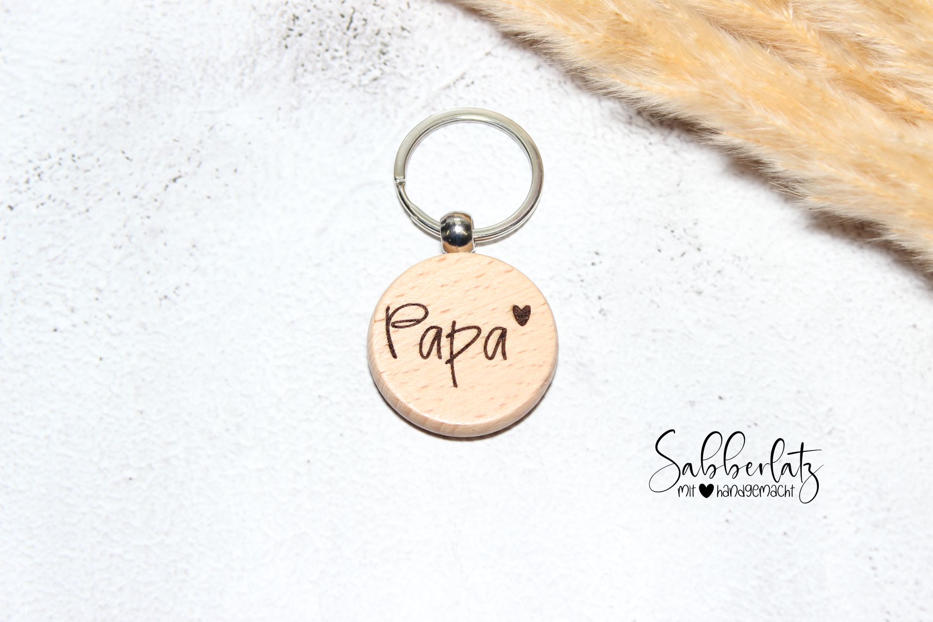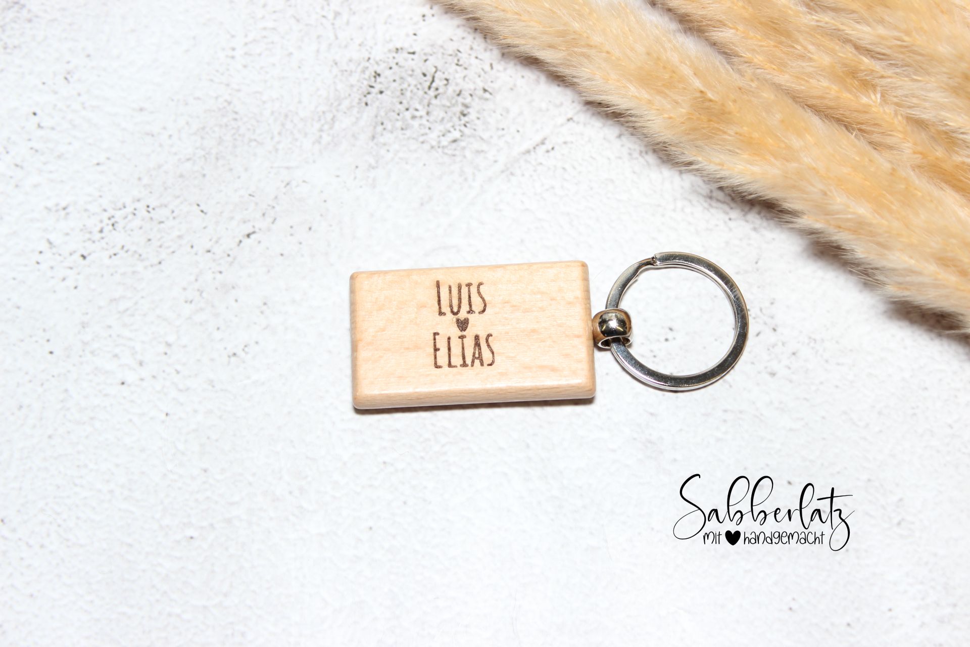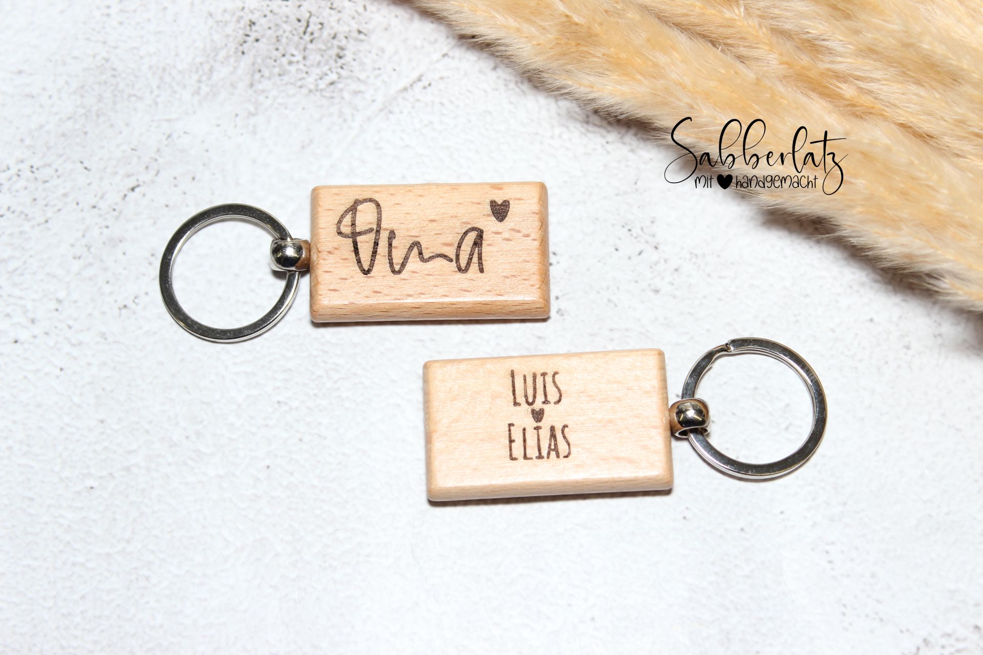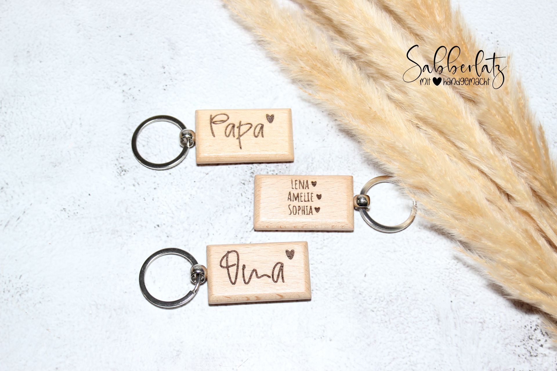 beidseitig graviert: auf eine Seite kommt der gewählte Text (Mama, Papa, Oma, Opa, Onkel oder Tante) mit einem kleinen Herz oben rechts, auf die andere Seite kommen die im Feld "Name" angegebenen Namen die immer durch ein kleines Herz voneiander getrennt sind.
