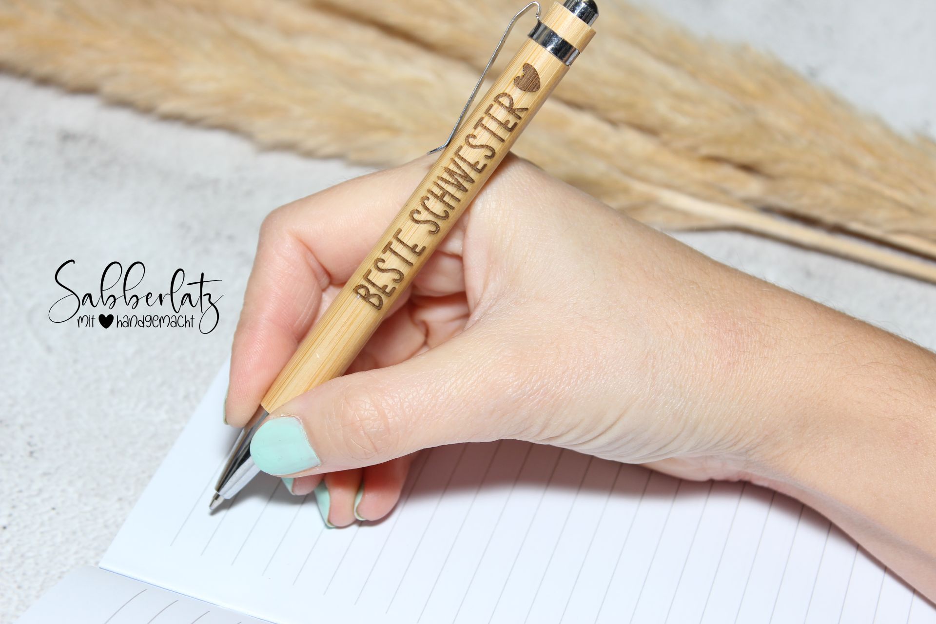 Durch Lasergravur individualisiert mit deinem Wunschwort (maximal 2 Wörter möglich) und auf Wunsch auch kleinem Symbol (Herz, Stern oder Unendlichzeichen).