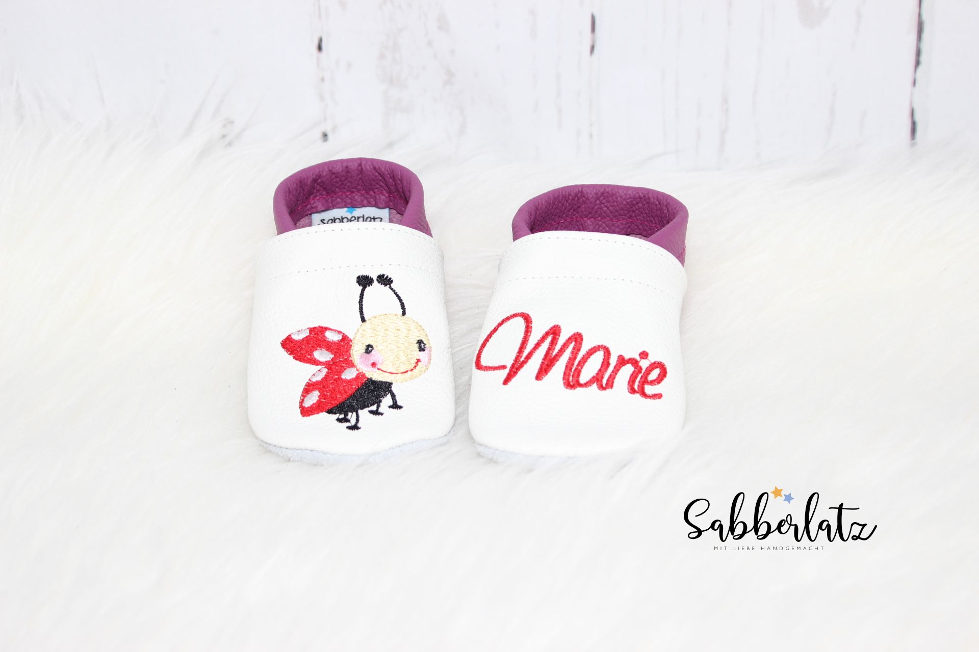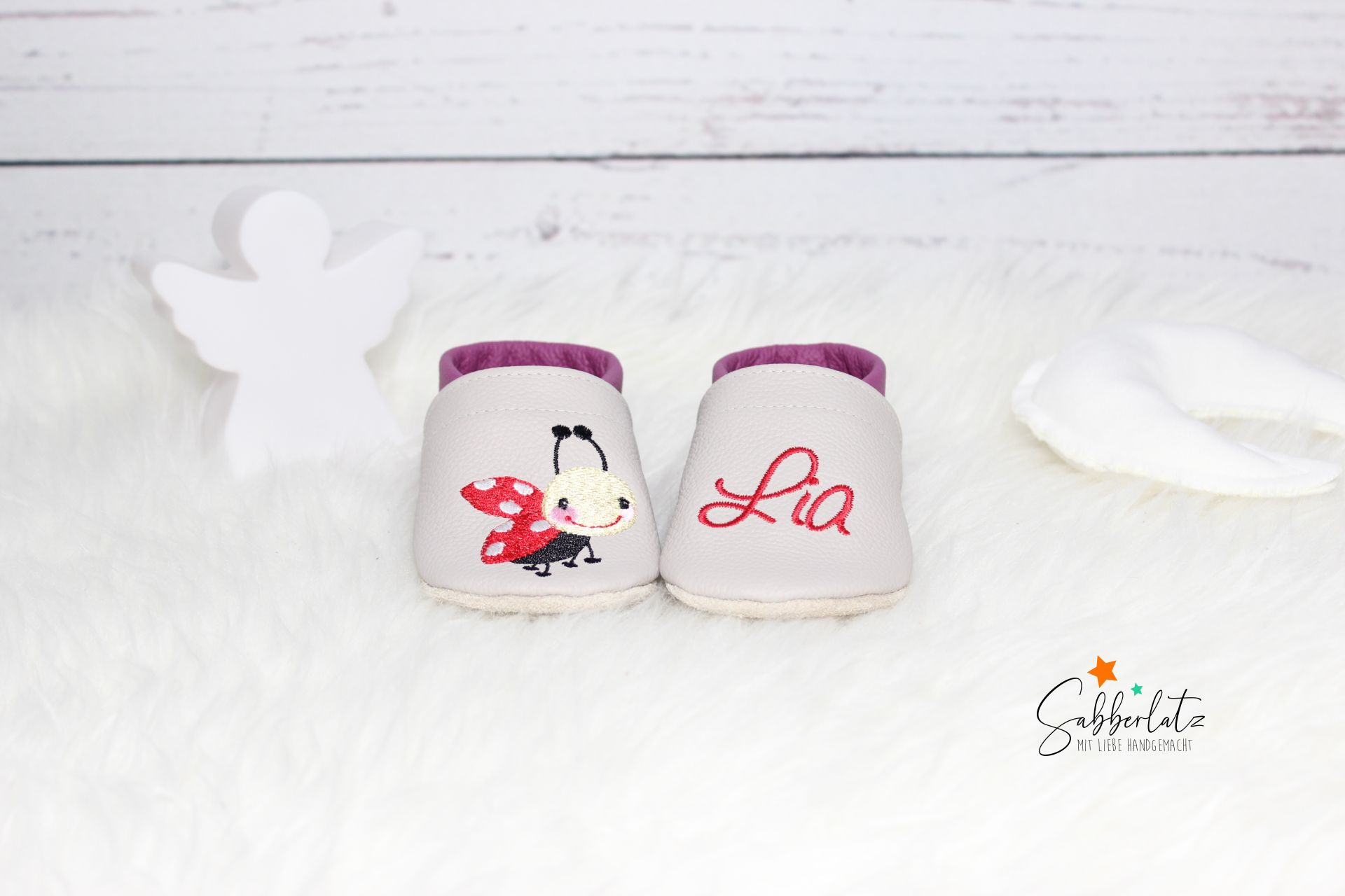 Lederpuschen fliegender Marienkäfer