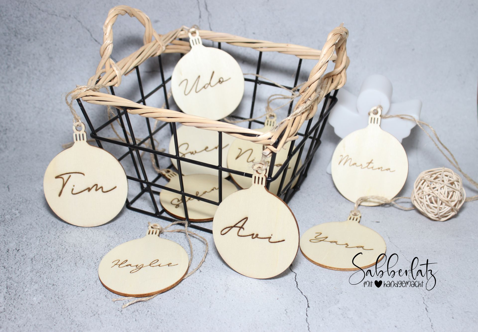 Bei Bestellung mehrerer Aufhänger bitte jeden Namen deutlich durch / voneinander trennen