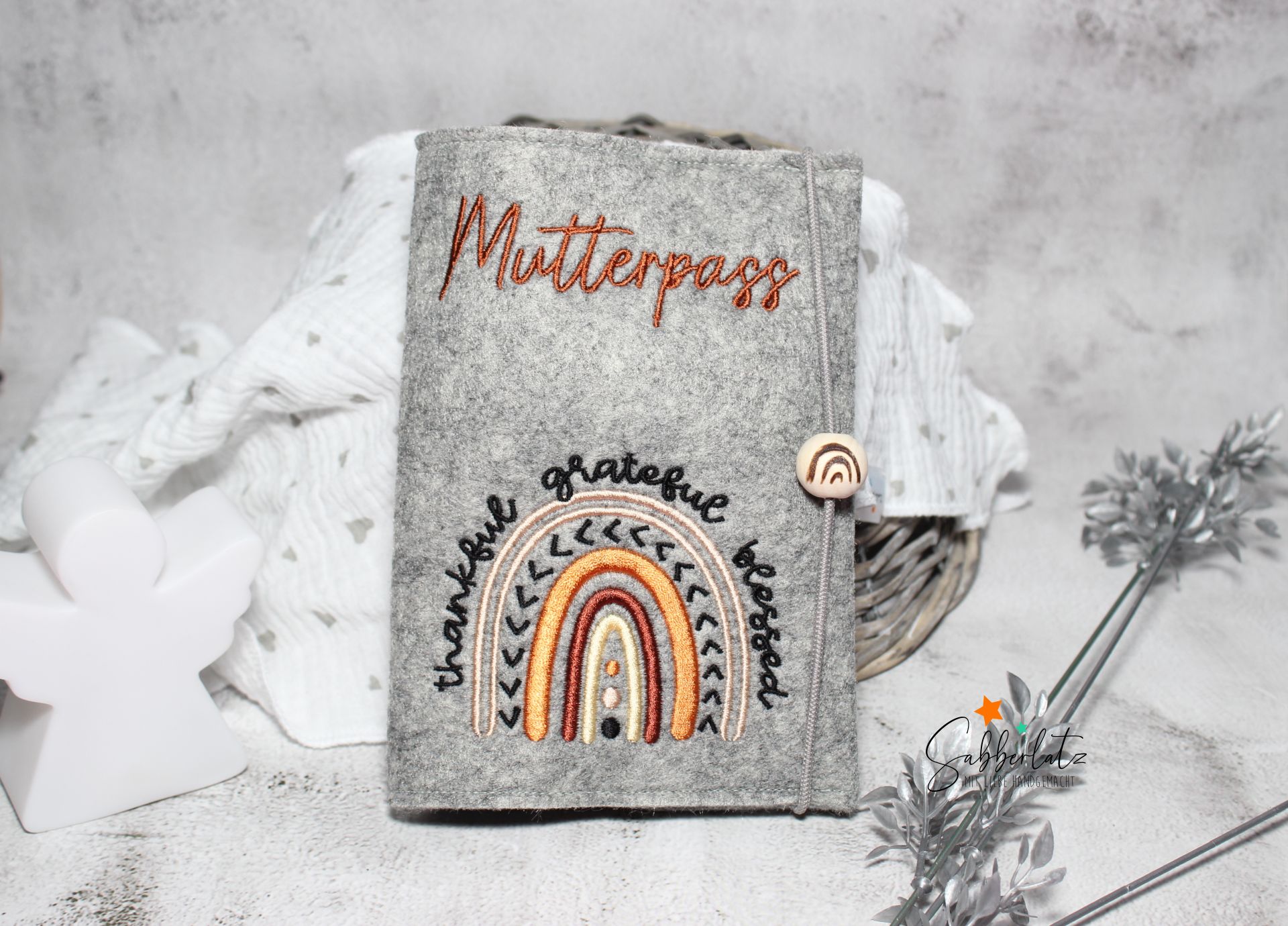 (Beispiel: Mutterpass Braun, Regenbogen Natur/Brauntöne)