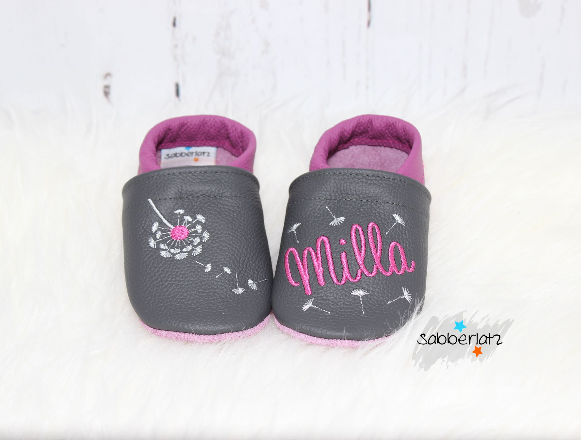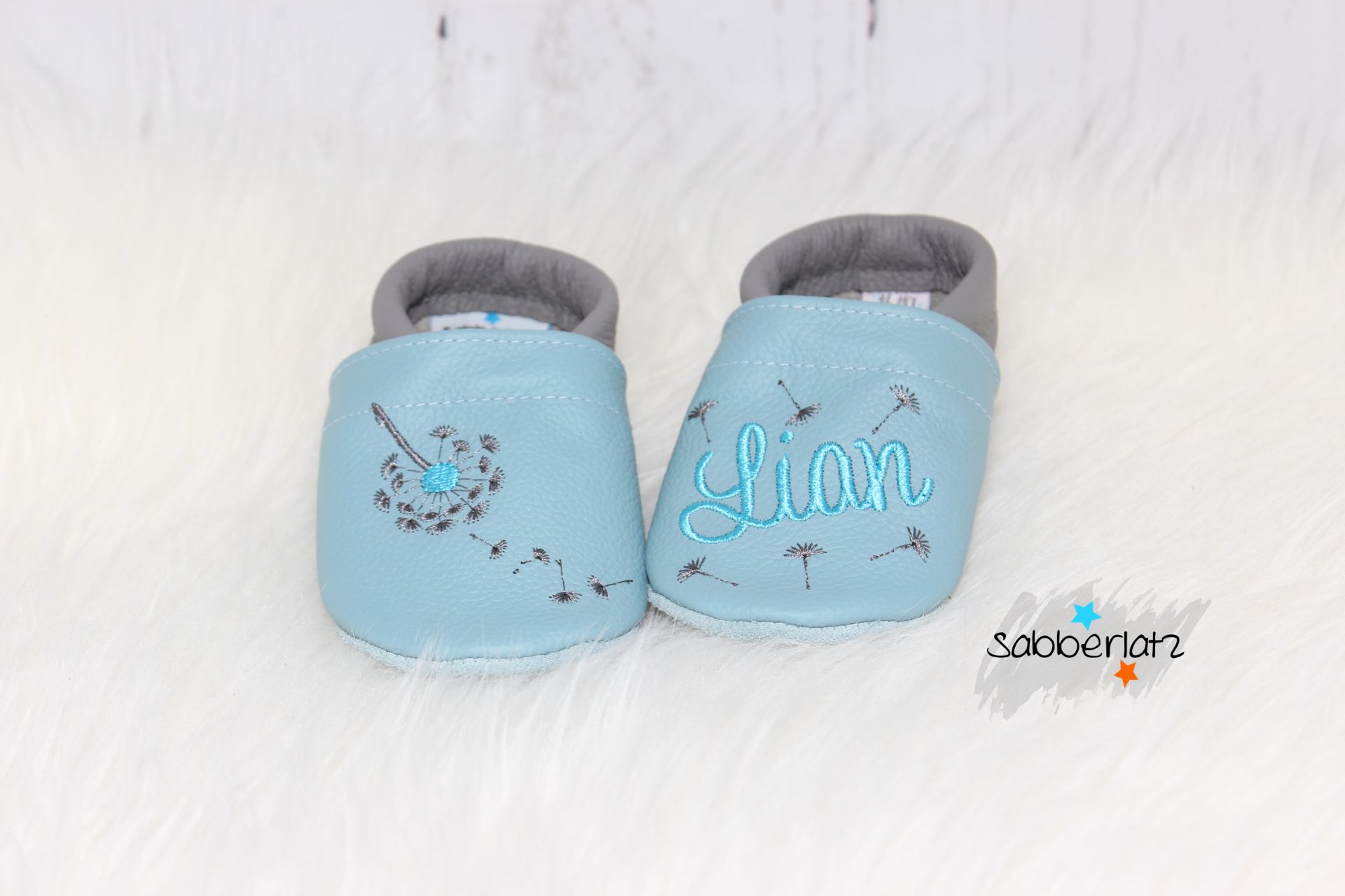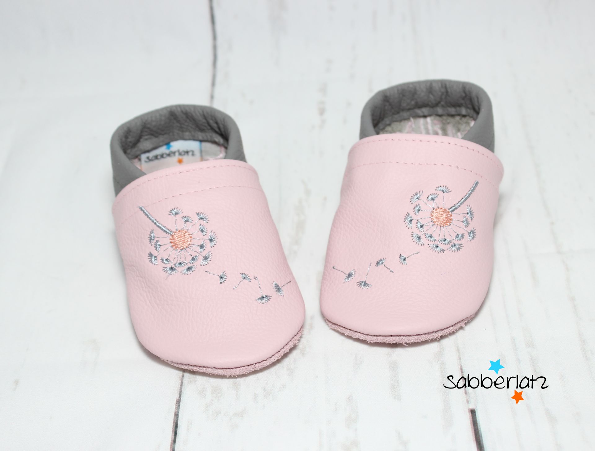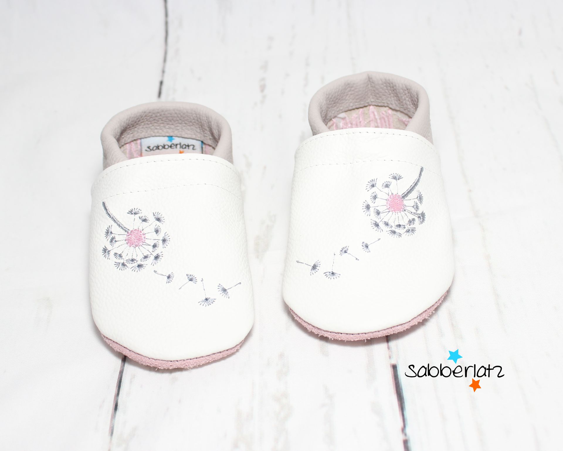 Bitte beachten: Das Gummi in den Puschen lasse ich offen, damit es individuell an den Fuß des Kindes angepasst werden kann. Eine Anleitung zum Verknoten liegt der Bestellung bei.