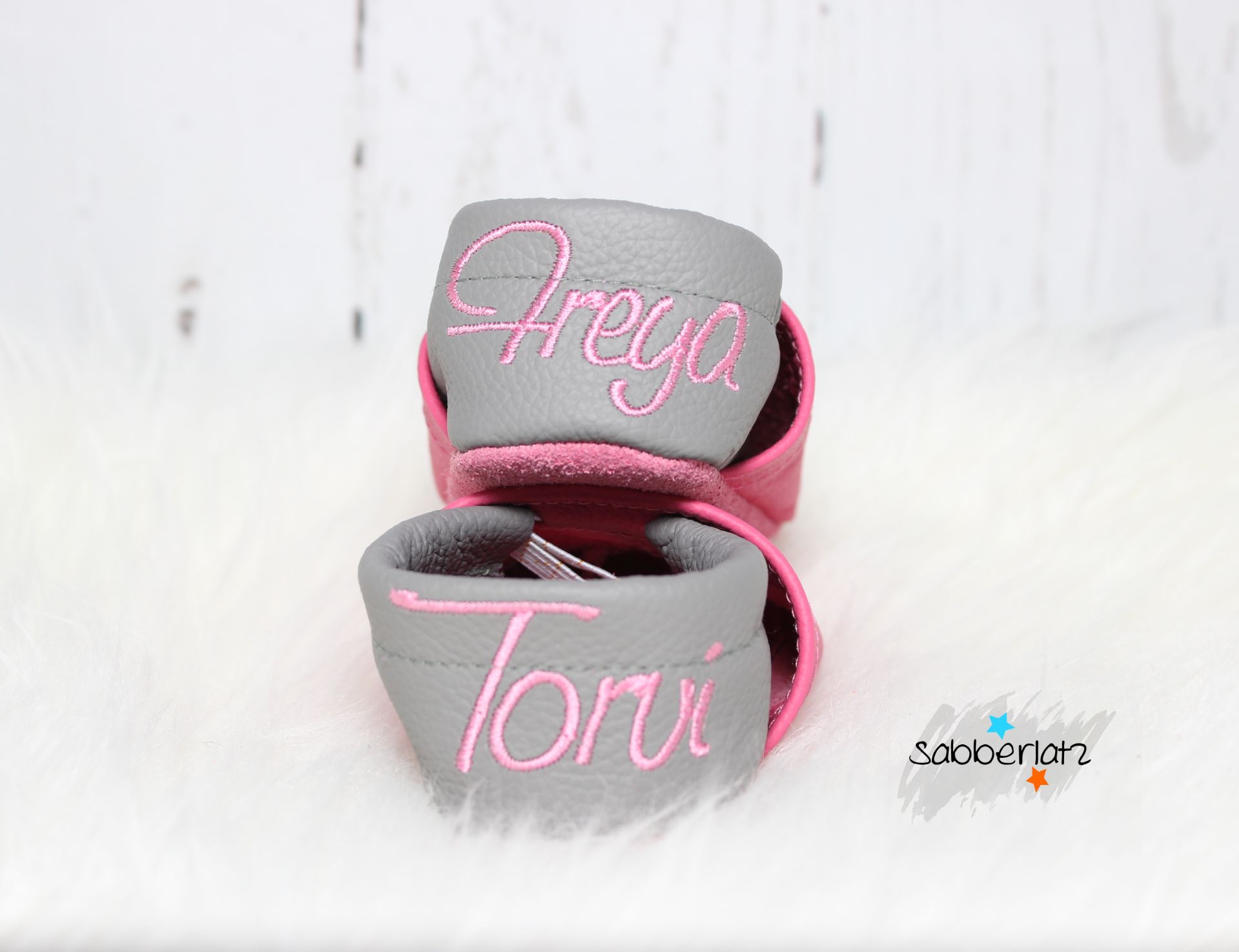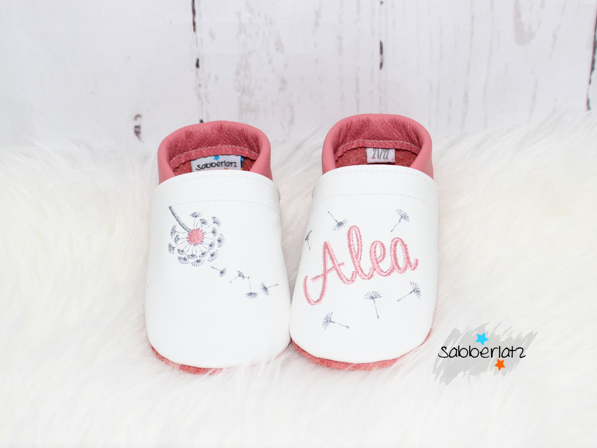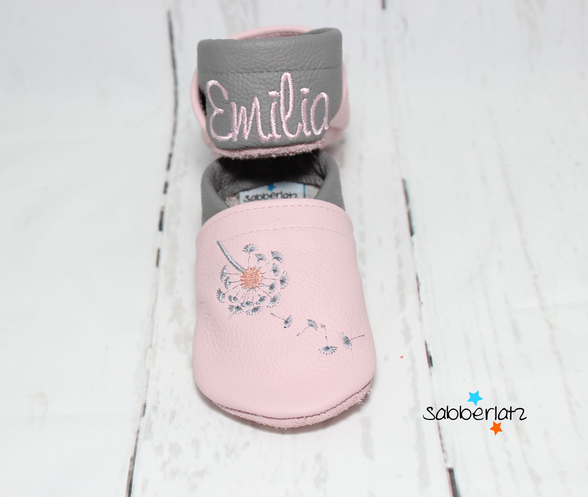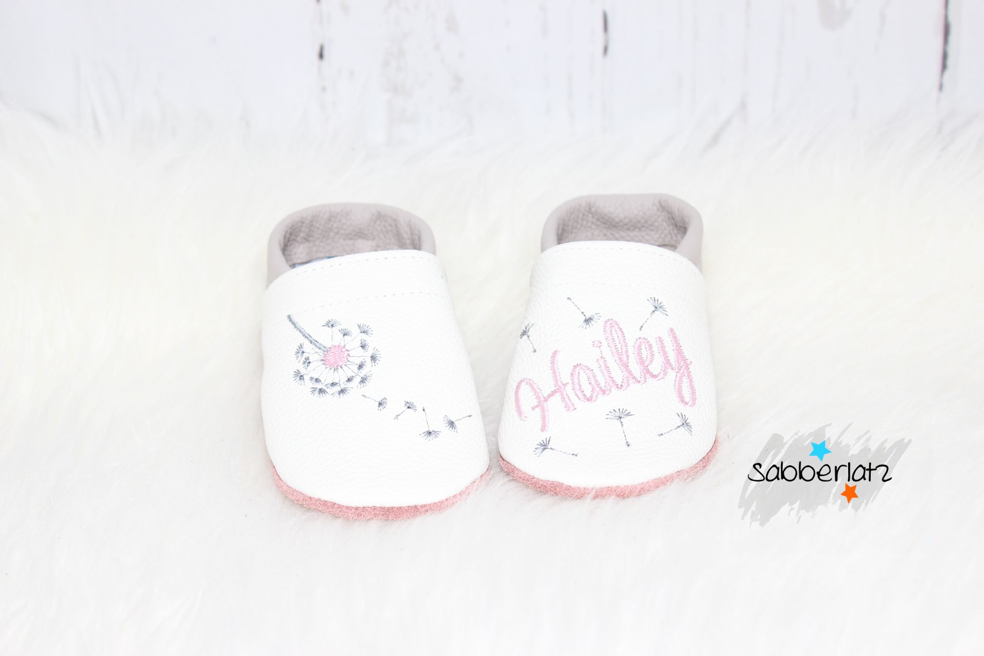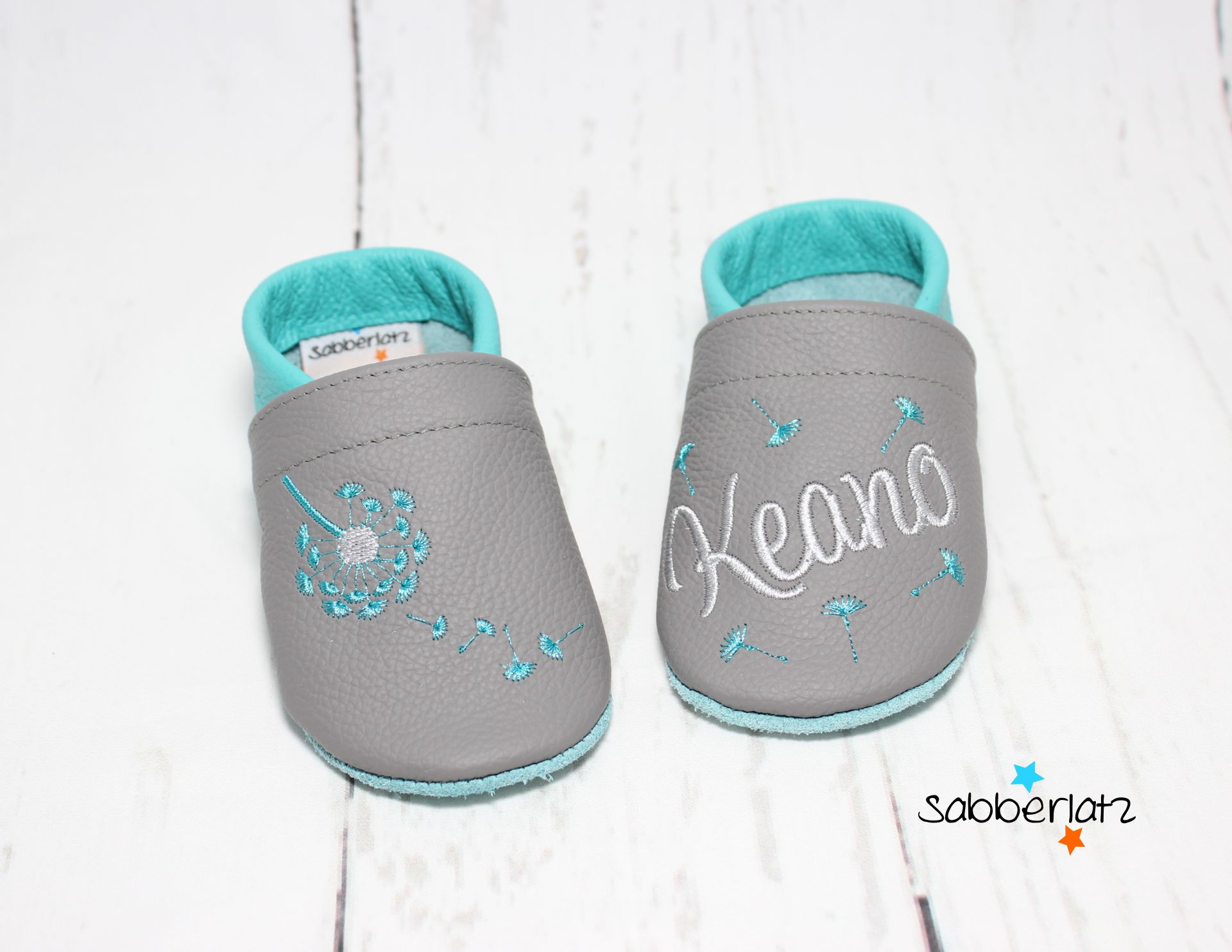 Bitte beachten: Das Gummi in den Puschen lasse ich offen, damit es individuell an den Fuß des Kindes angepasst werden kann. Eine Anleitung zum Verknoten liegt der Bestellung bei.