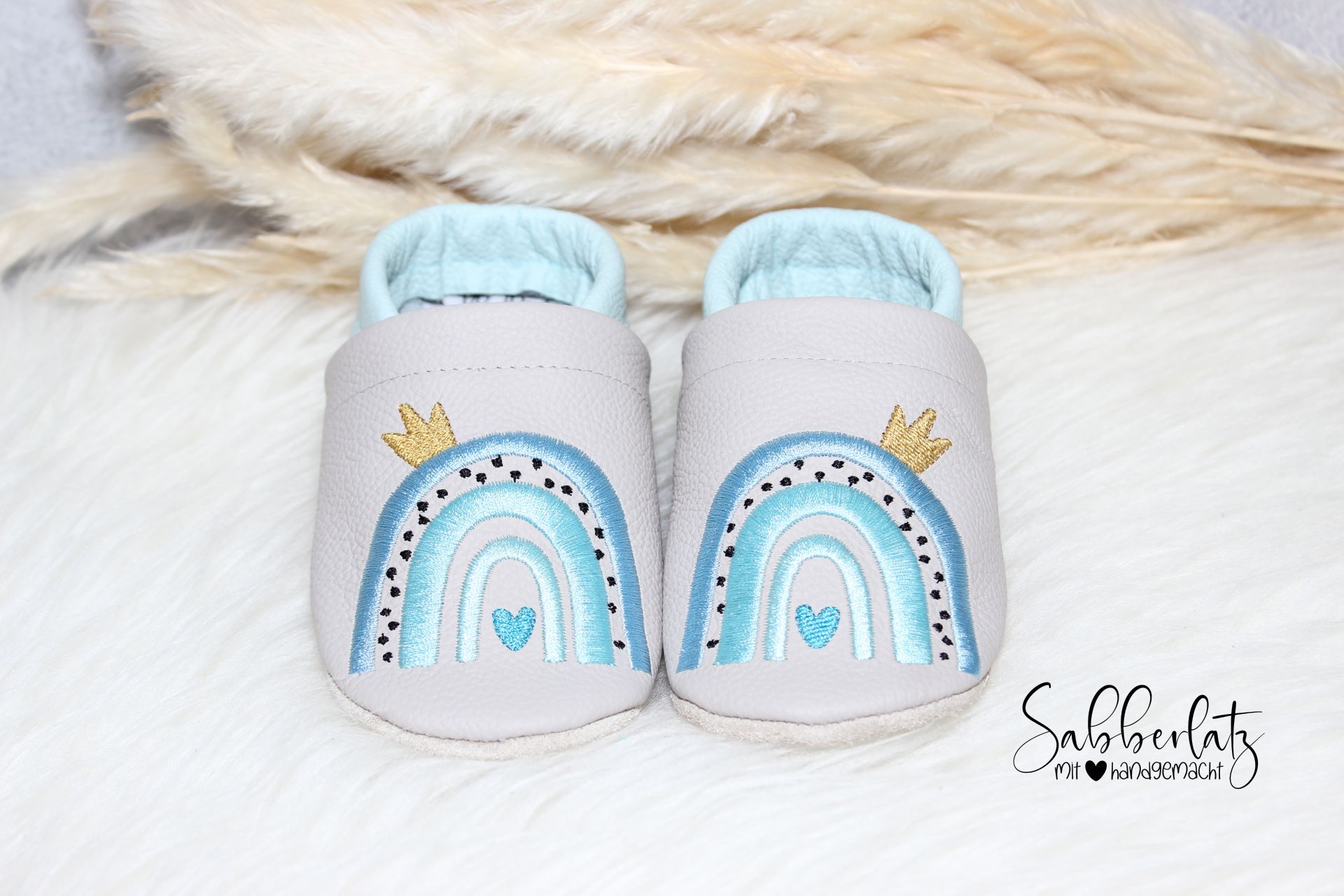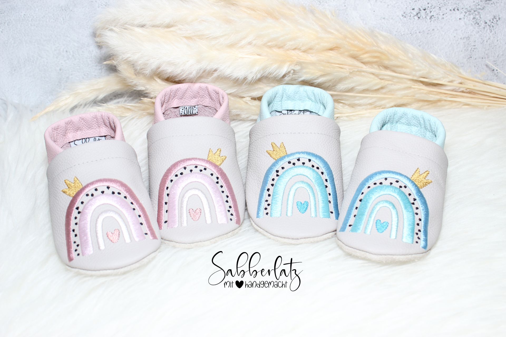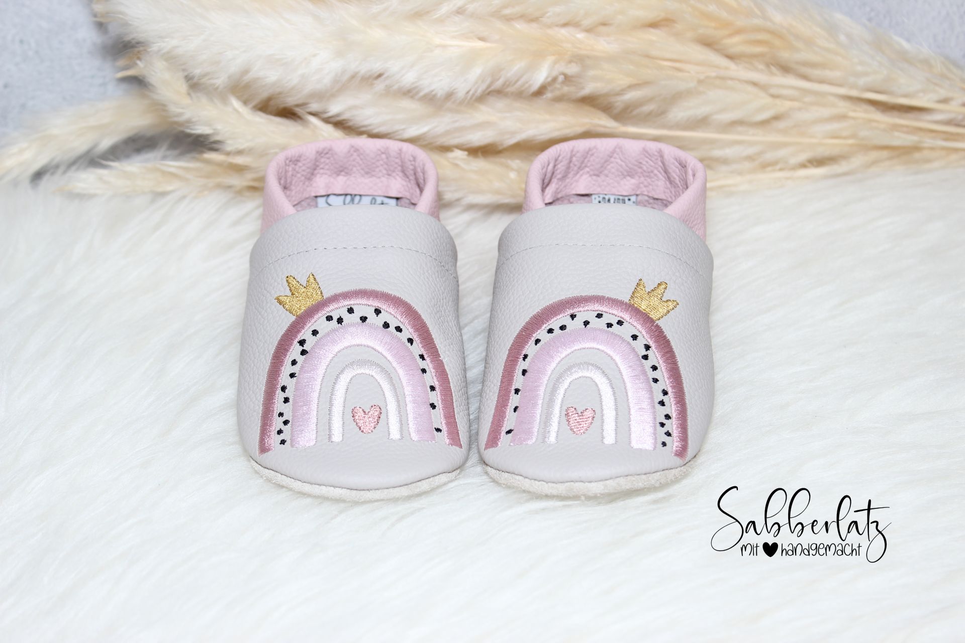 Lederpuschen Regenbogen mit Krone