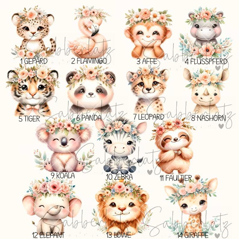 Du kannst zwei Tiere auswählen (also entweder zwei verschiedene oder zwei gleiche), die auf die Trinkflasche gedruckt werden sollen - der Name kommt senkrecht in die Mitte der beiden gewählten Tiere.