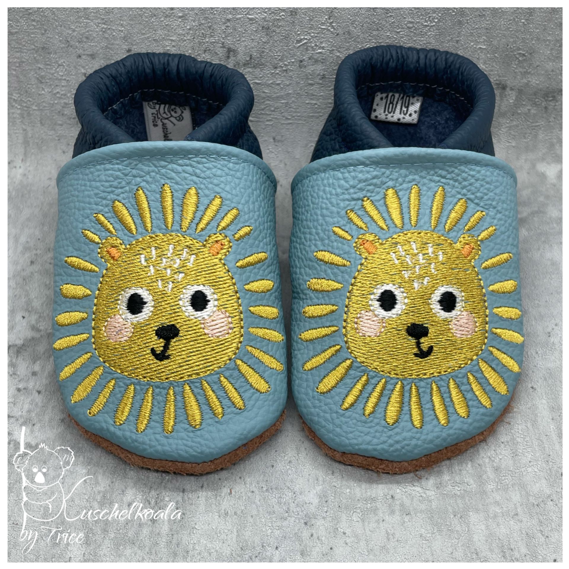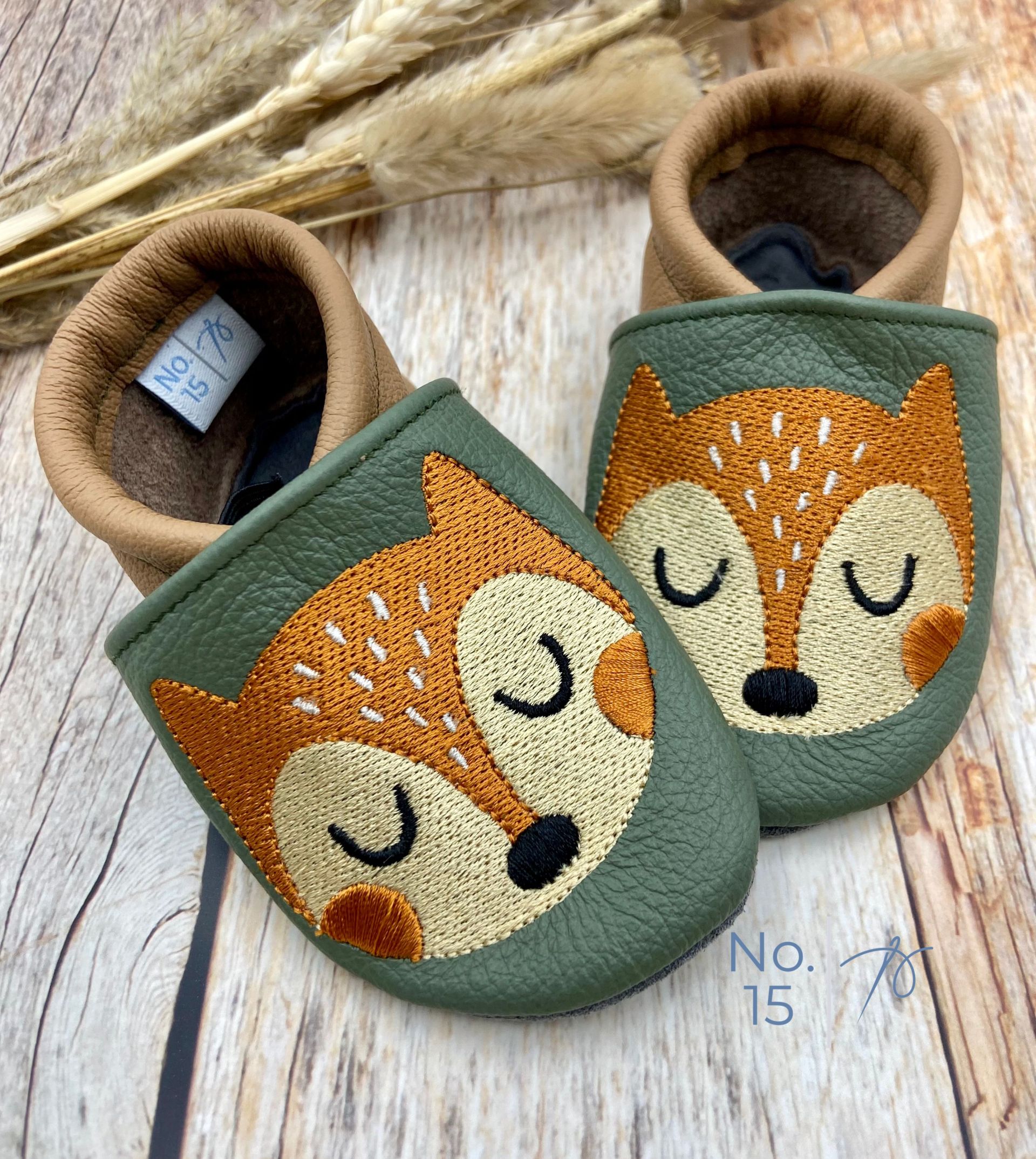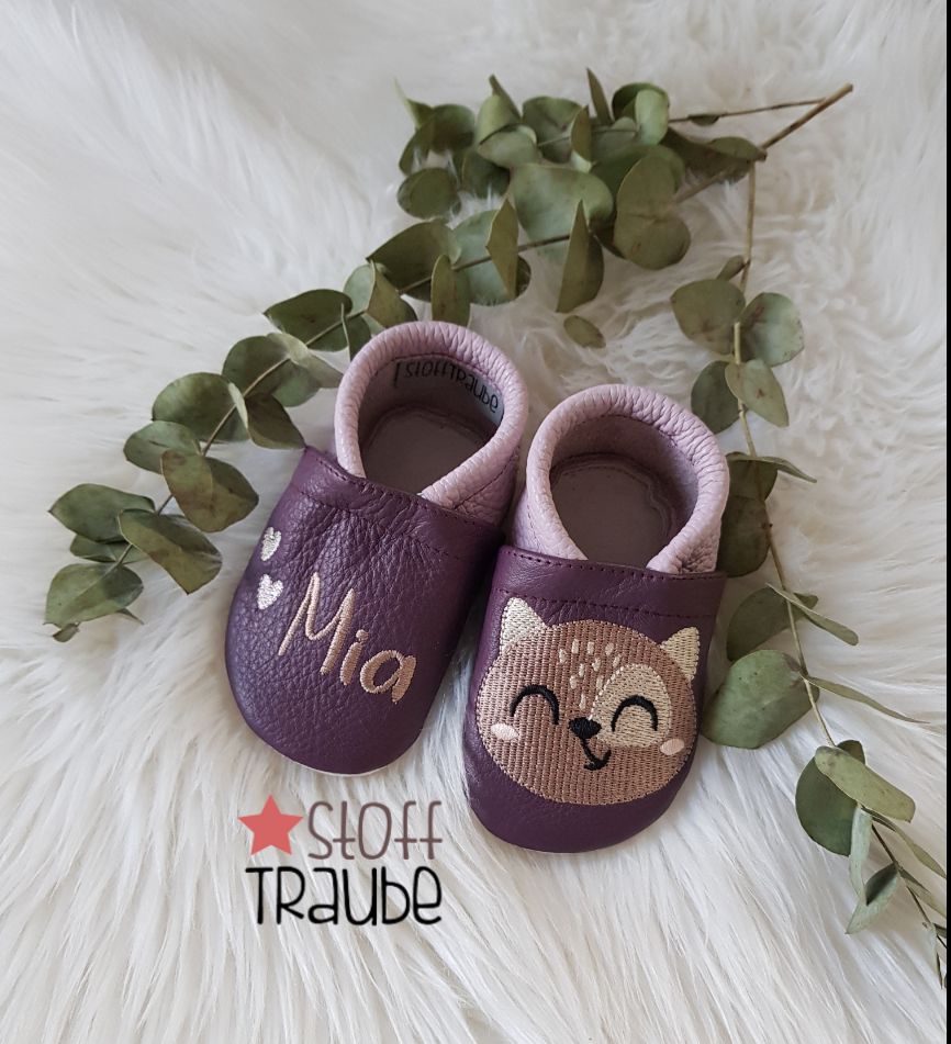Alle Motive passen in den 10x10cm Stickrahmen und haben die perfekte Größe für Lederpuschen ab Größe 18 (Motivgrößen ca. 6cm)