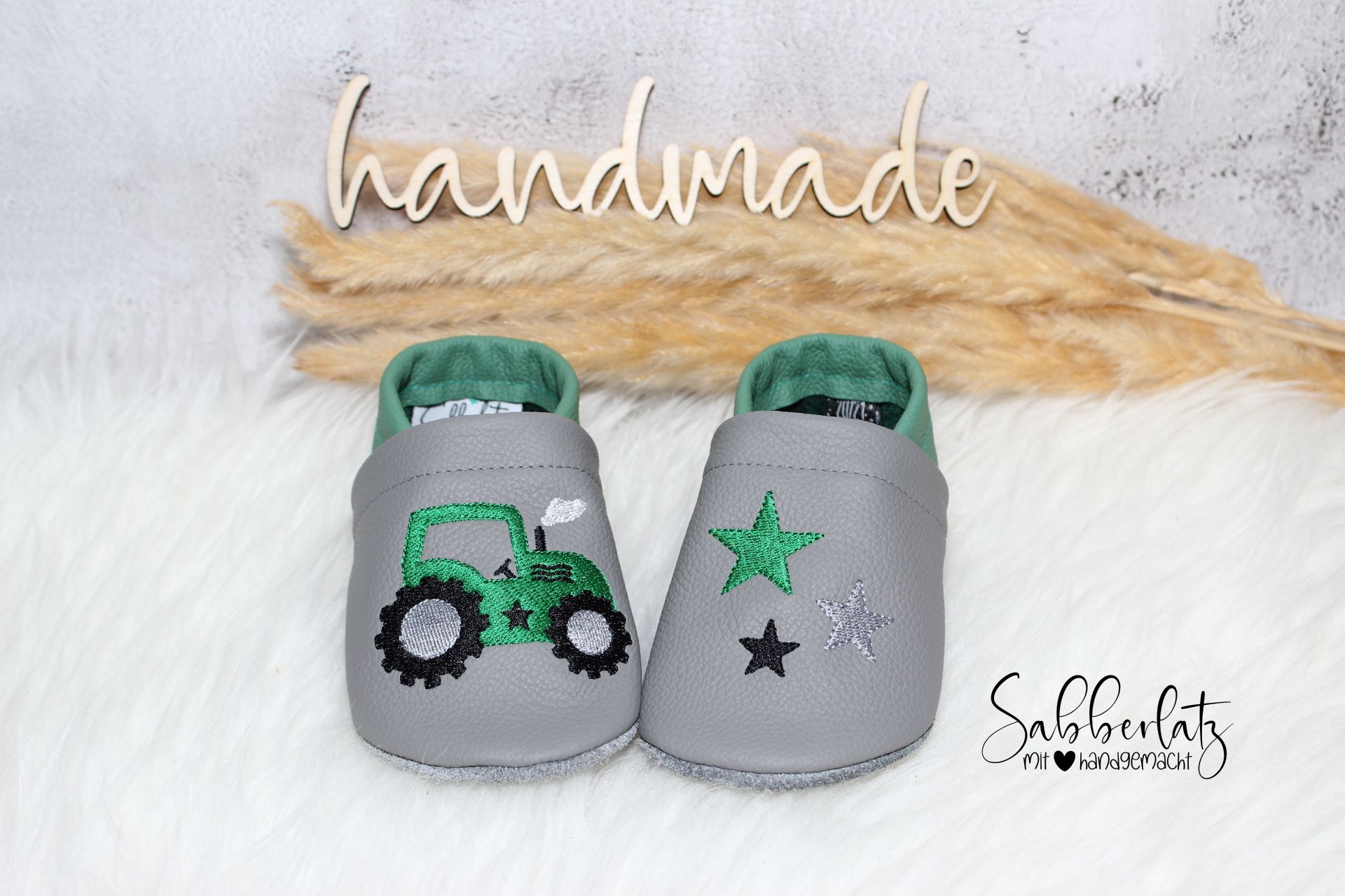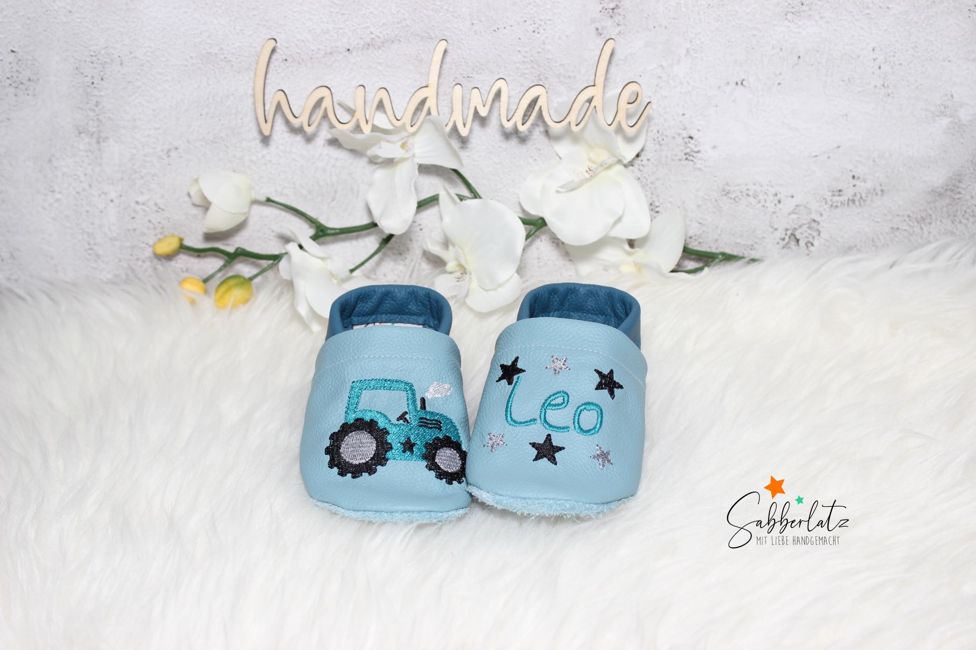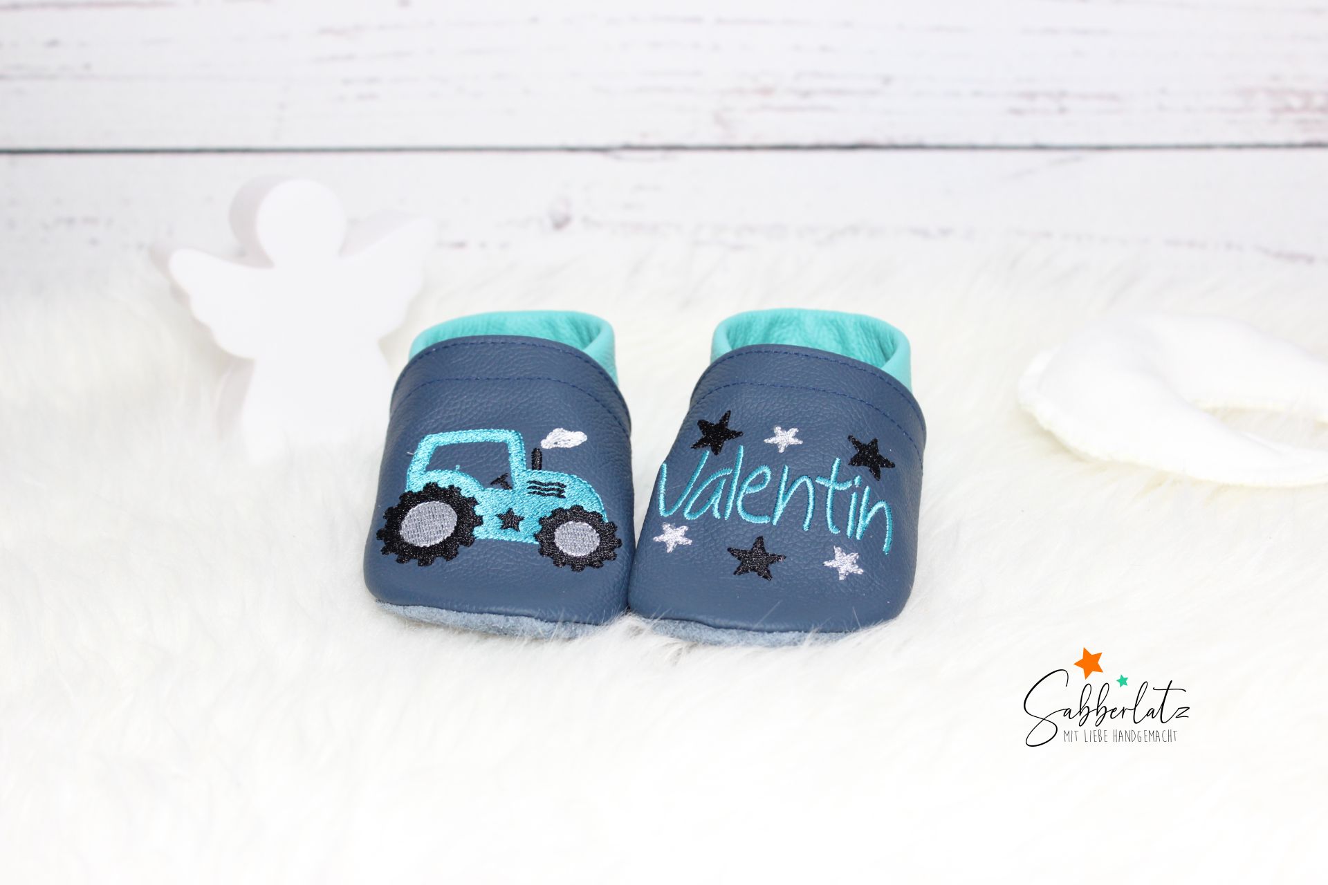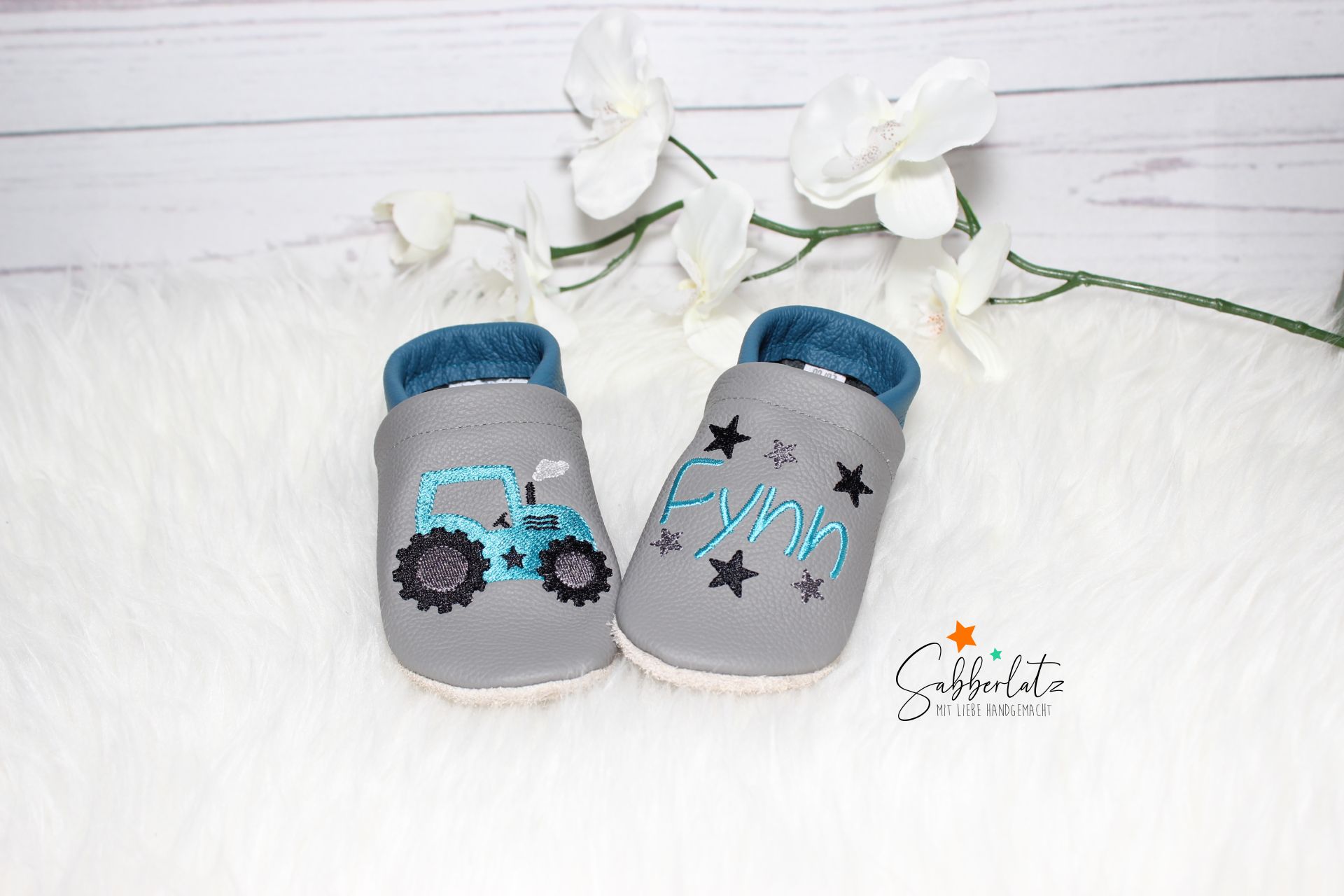 Bitte beachten: Das Gummi in den Puschen lasse ich offen, damit es individuell an den Fuß des Kindes angepasst werden kann. Eine Anleitung zum Verknoten liegt der Bestellung bei.