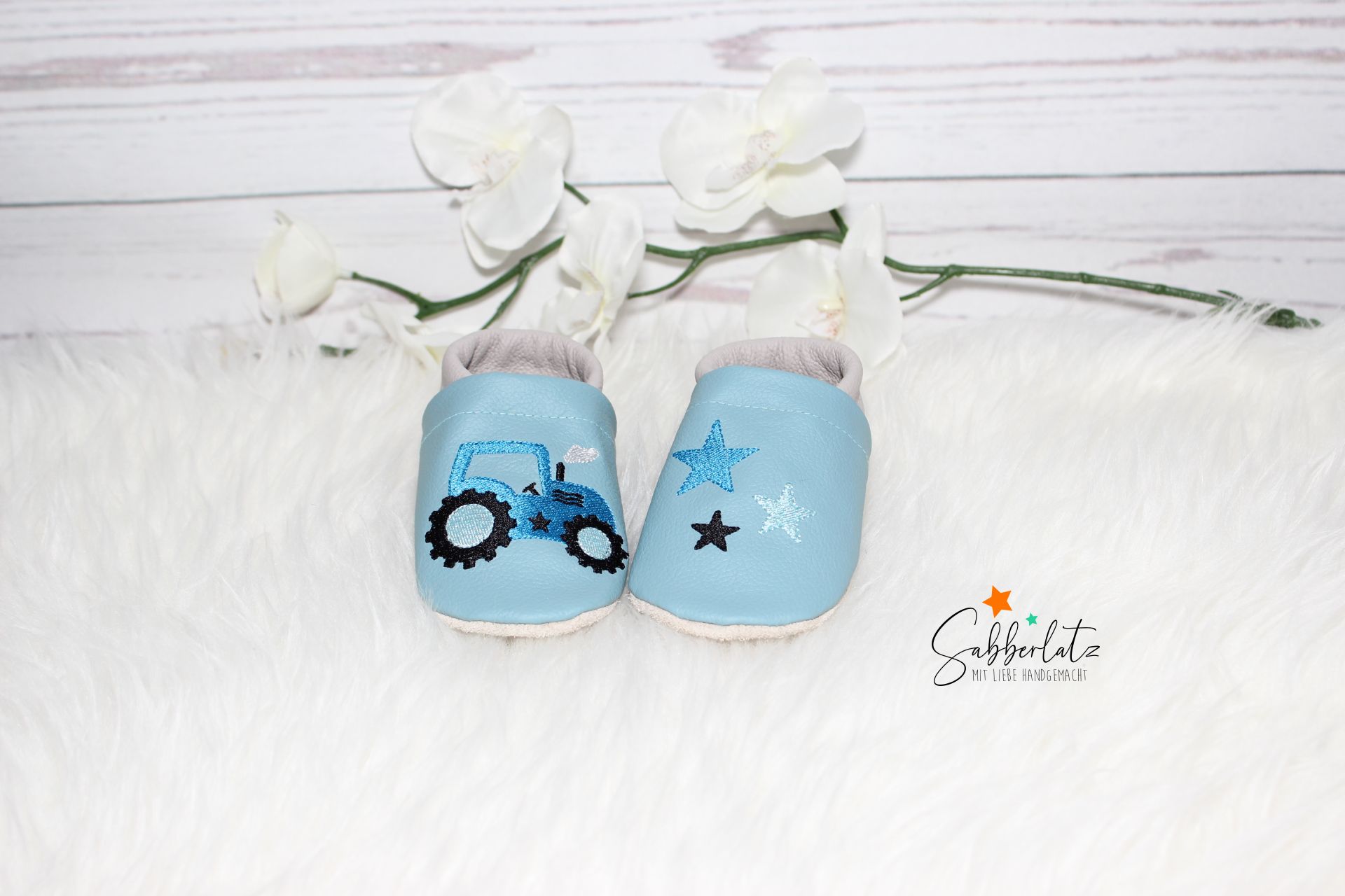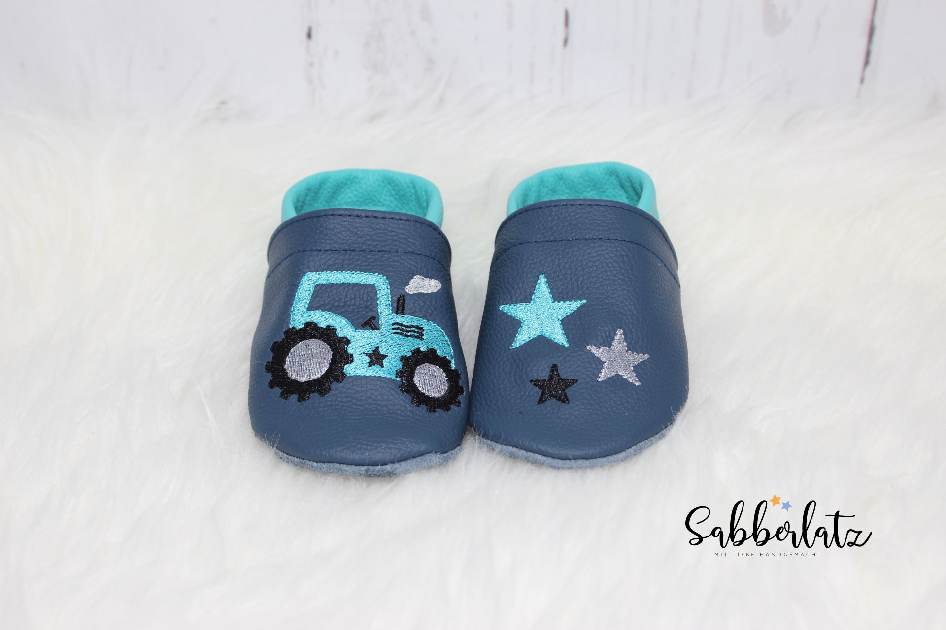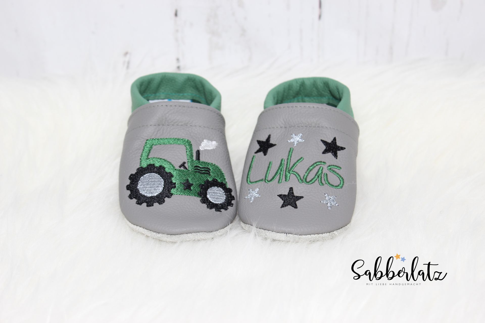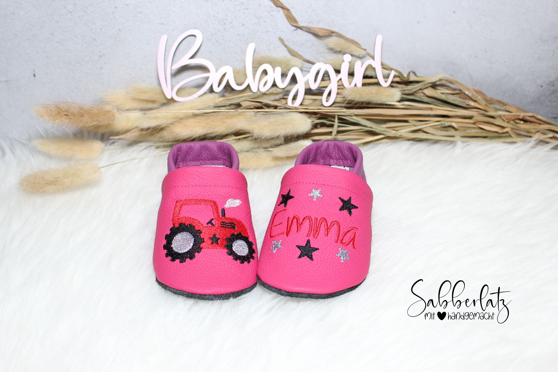 Bitte beachten: Das Gummi in den Puschen lasse ich offen, damit es individuell an den Fuß des Kindes angepasst werden kann. Eine Anleitung zum Verknoten liegt der Bestellung bei.
