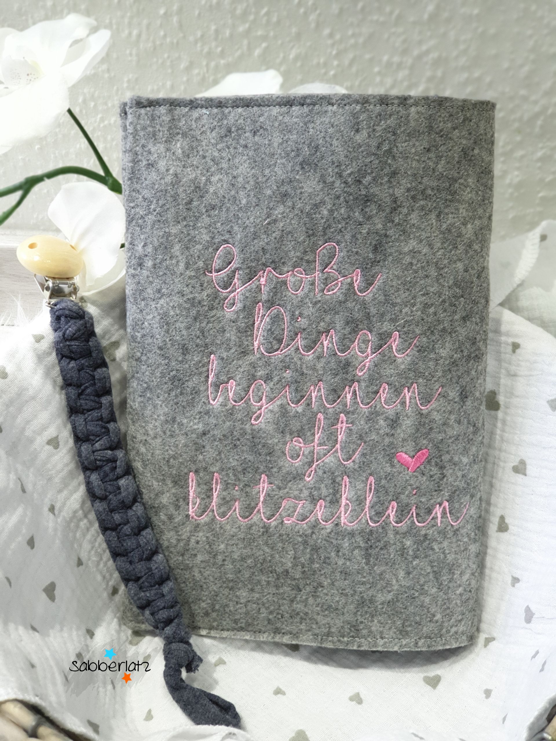 U-Heft-Hülle aus Filz "Große Dinge"