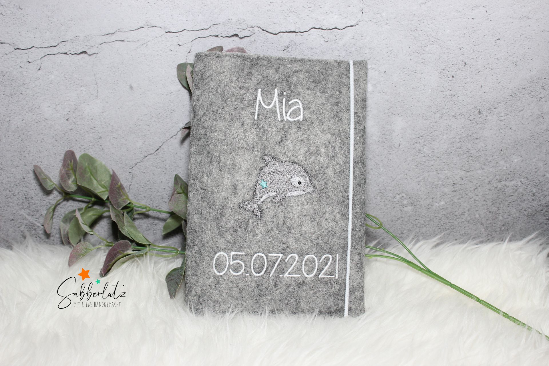 UHEFTDELFIN-Filz Grau-ohne Impfpassfach-Flieder-OHNEPERLE-ENTWURFJA