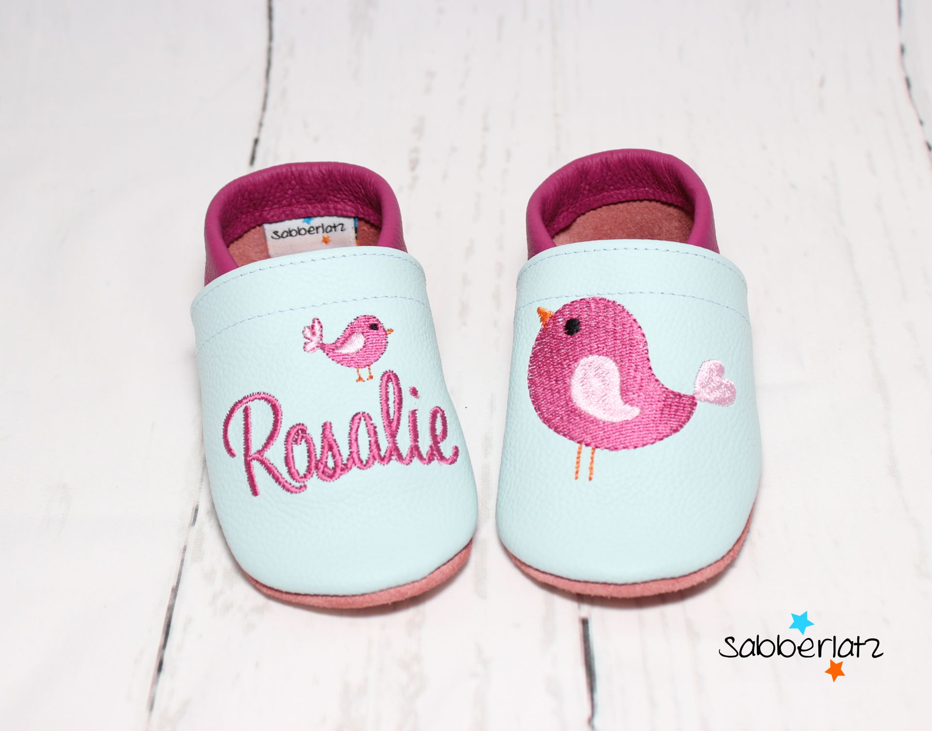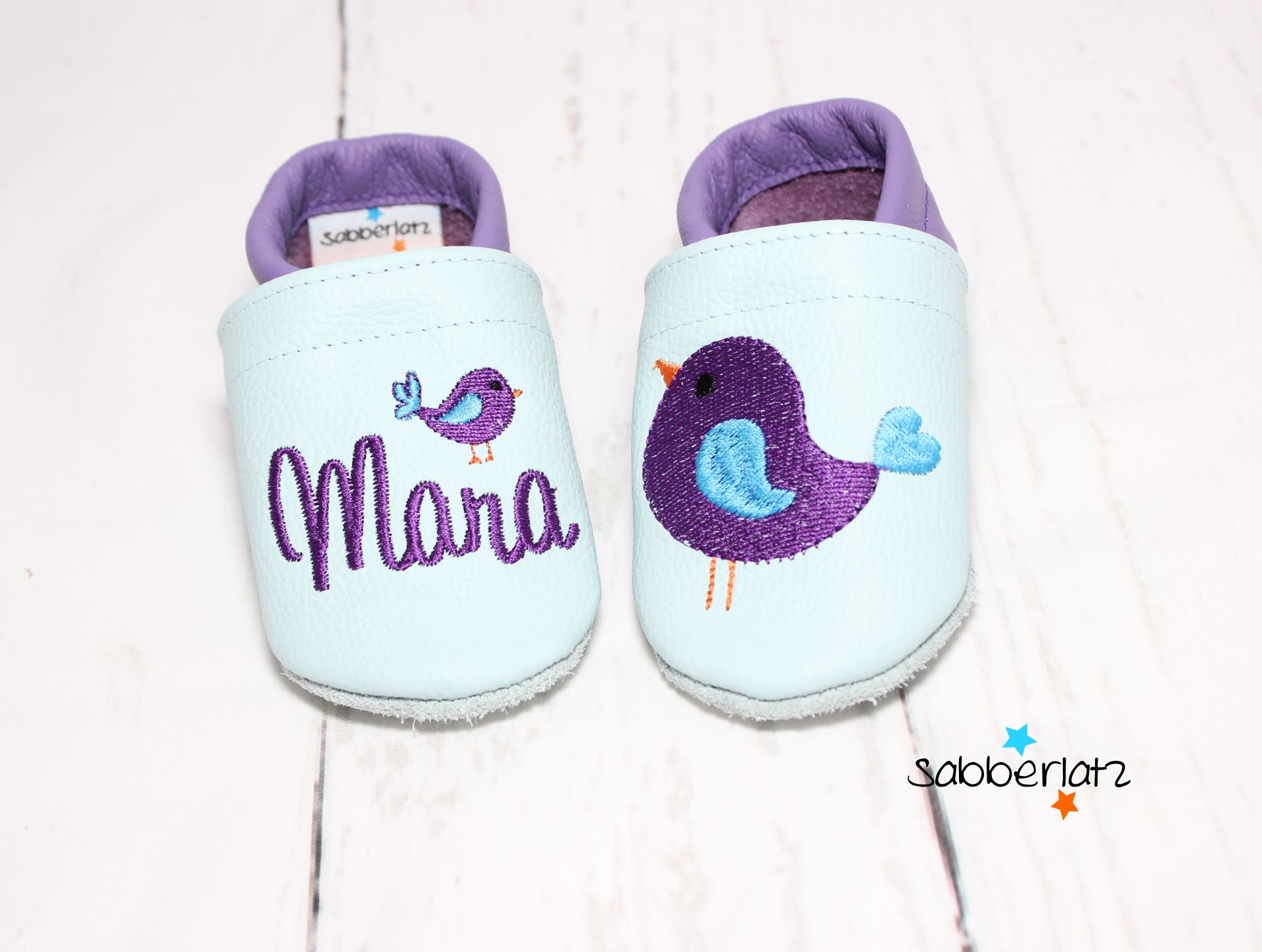 Bitte beachten: Das Gummi in den Puschen lasse ich offen, damit es individuell an den Fuß des Kindes angepasst werden kann. Eine Anleitung zum Verknoten liegt der Bestellung bei.