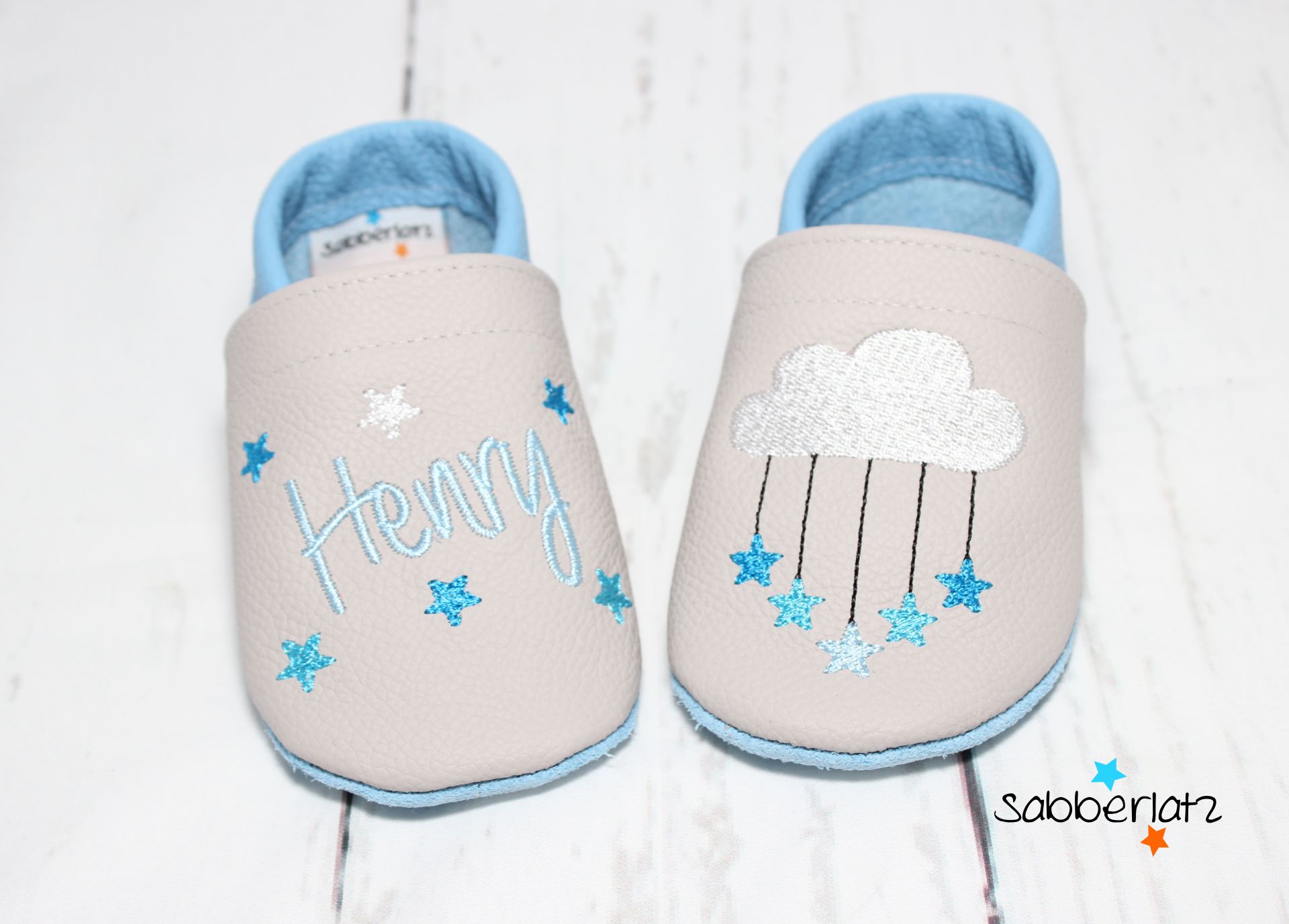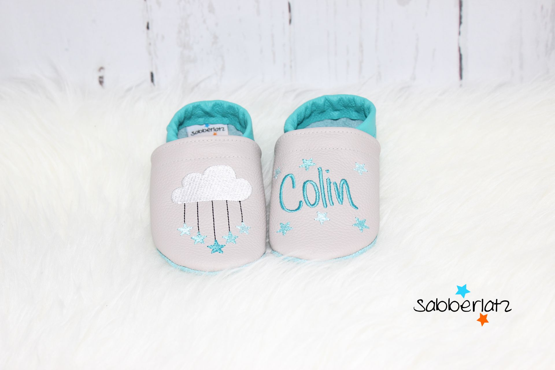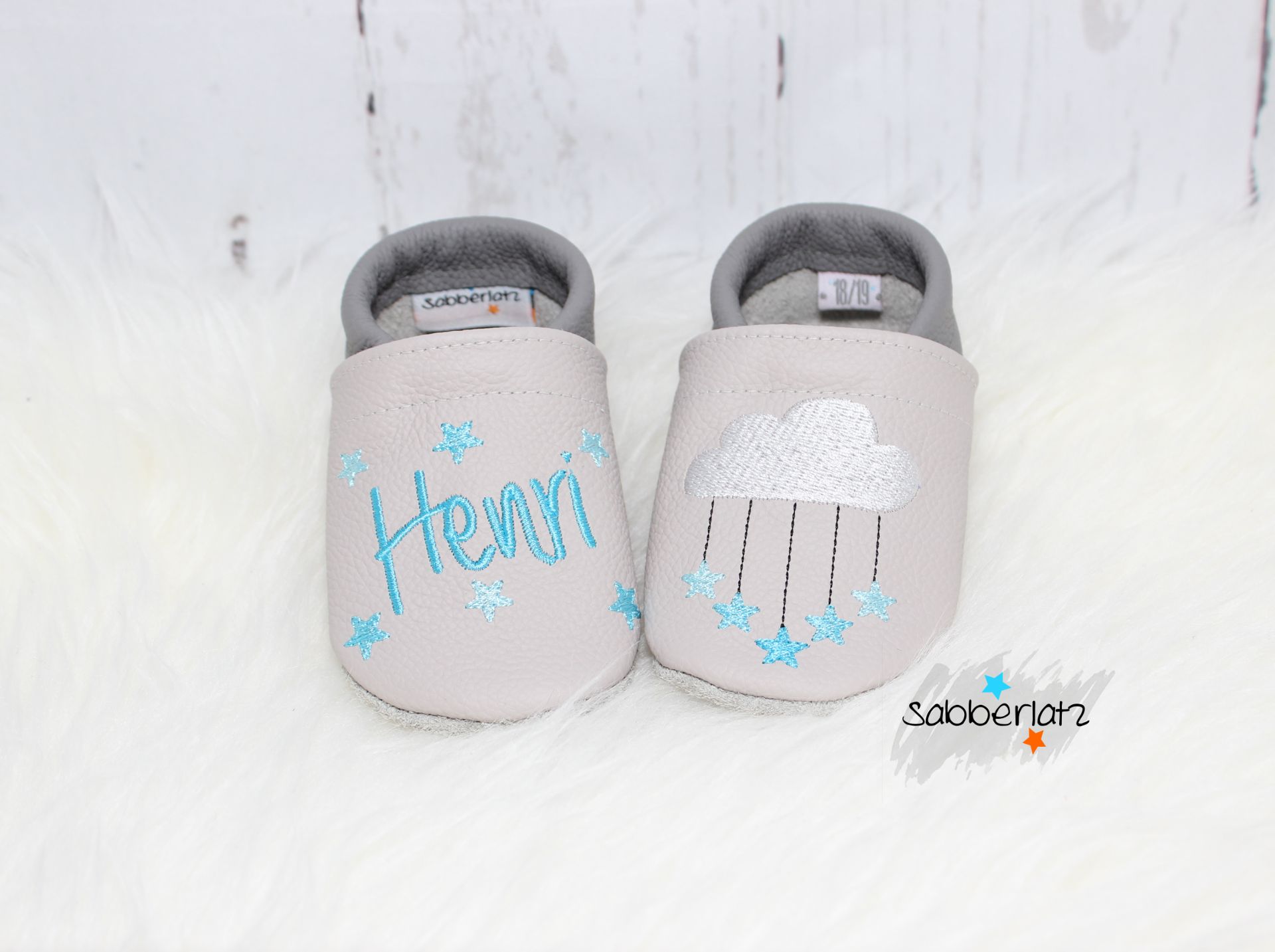 Bitte beachten: Das Gummi in den Puschen lasse ich offen, damit es individuell an den Fuß des Kindes angepasst werden kann. Eine Anleitung zum Verknoten liegt der Bestellung bei.